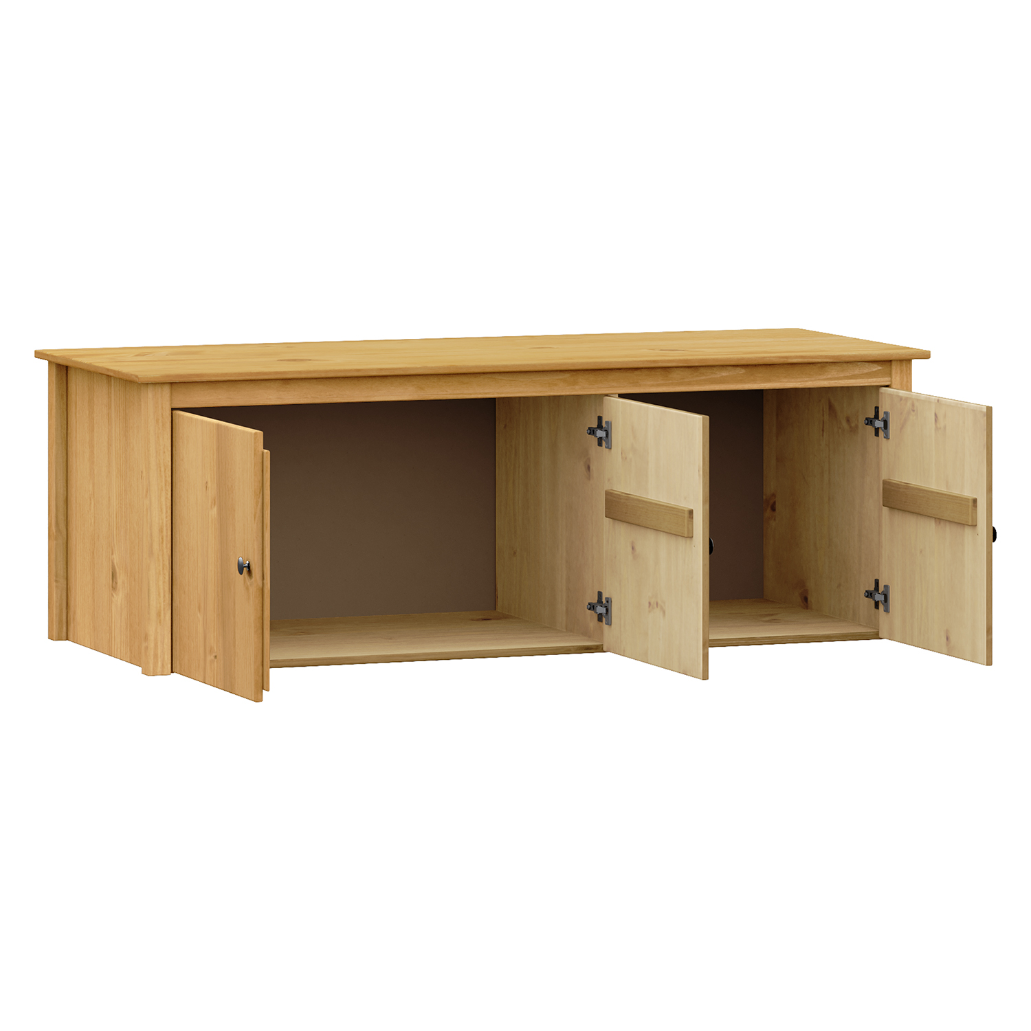 Kód produktu: 8061Vmateriál masív borovica voskovaná v medovom odtieni kovové úchytky vo farebnom prevedení černená mosadz 3 zásuvky s kovovými pojazdmi, 3 plné dvere, 2 police maximálne nosnosti uvedené v návode na montáž