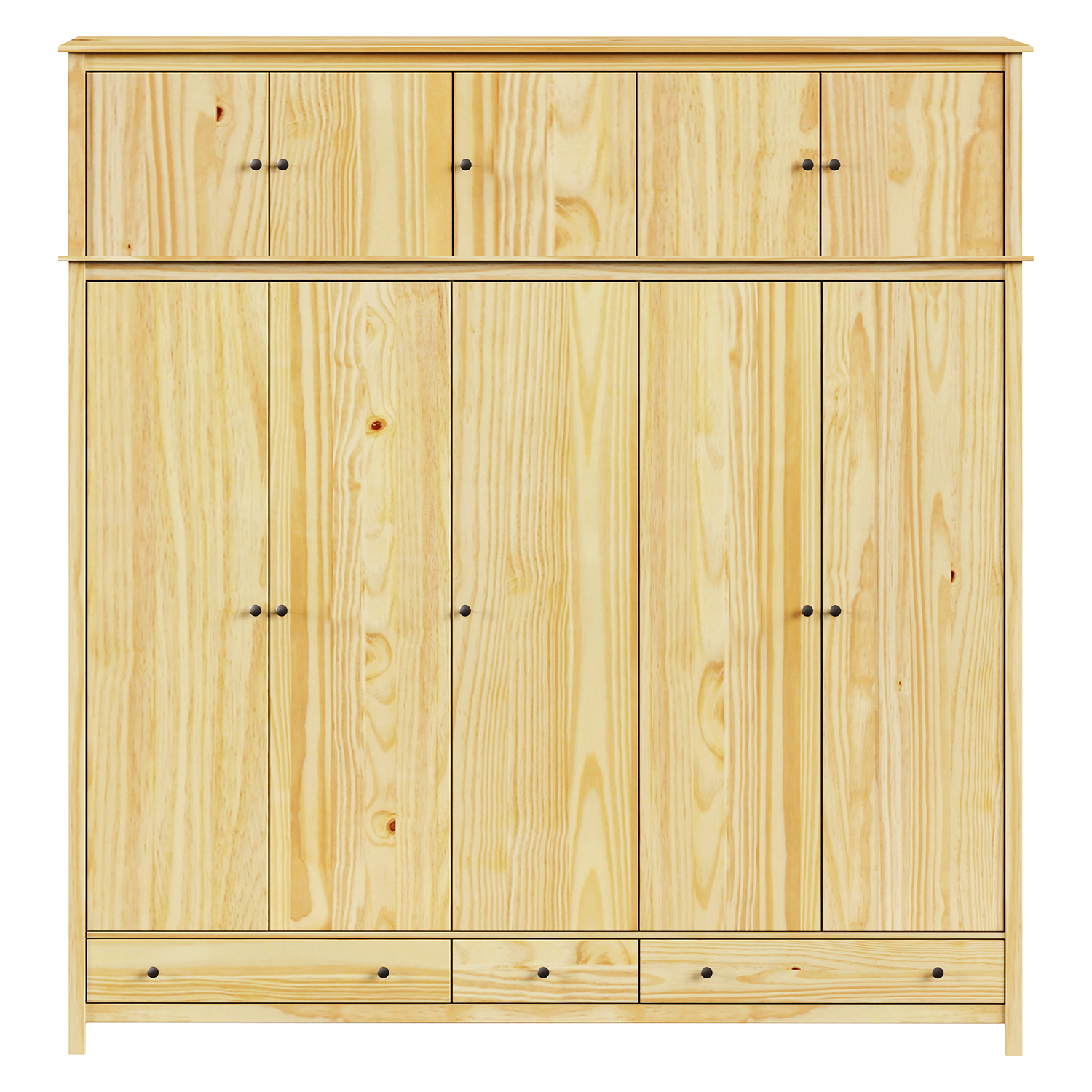 Kód produktu: 8061Kmateriál masív borovica, lakované prevedenie kovové úchytky vo farebnom prevedení čiernená mosadz 3 zásuvky s kovovými pojazdmi, 3 plné dvere, 2 police maximálne nosnosti uvedené v návode na montáž