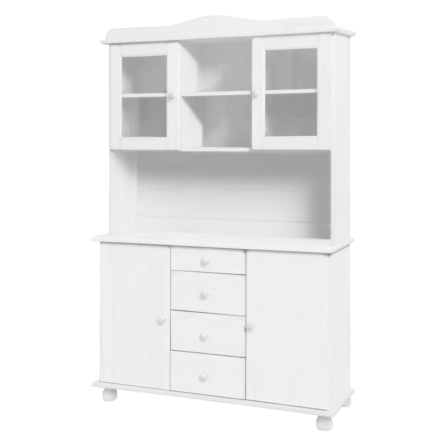 Kód produktu: 8045Bzostava príborníka 8045B a nadstavca 8046B materiál masív borovica, farebné prevedenie biely lak príborník: 4 zásuvky s kovovými pojazdmi, 2 skrinky s dvierkami vybavené policou nadstavec: 2 presklené dvierka rozmer príborníka (š/h/v) 119 × 38 × 81 cm rozmer nadstavca (š/h/v) 119 × 30 × 108 cm