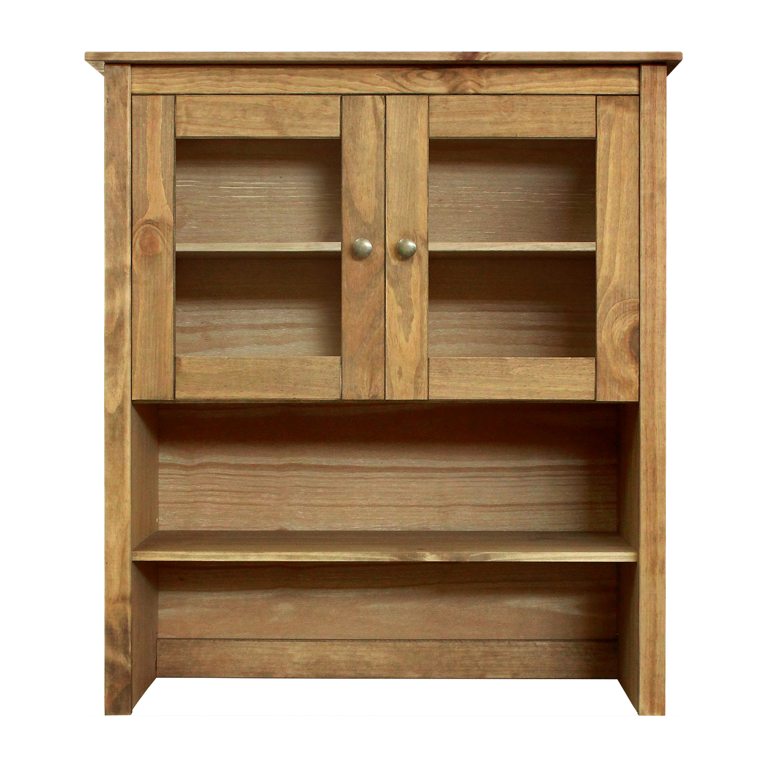 Kód produktu: 8077Vmateriál masív borovica voskovaná v medovom odtieni kovové úchytky vo farebnom prevedení černená mosadz dvoje čiastočne presklené dvere, štyri police