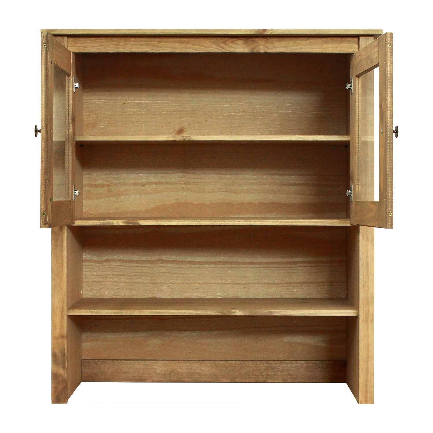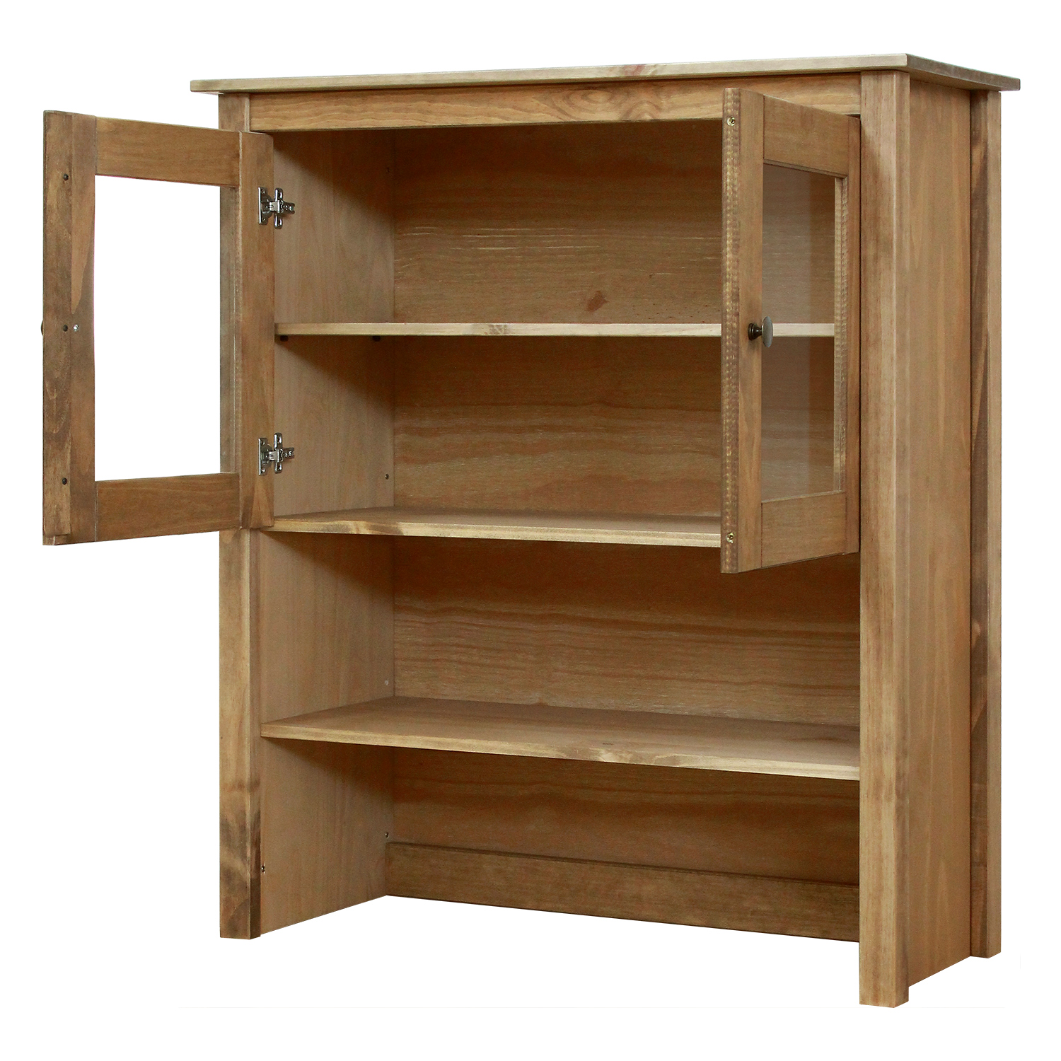 Kód produktu: 8060Vmateriál masív borovica voskovaná v medovom odtieni kovové úchytky vo farebnom prevedení černená mosadz 2 presklené dvere, 2 police maximálne nosnosti uvedené v návode na montáž
