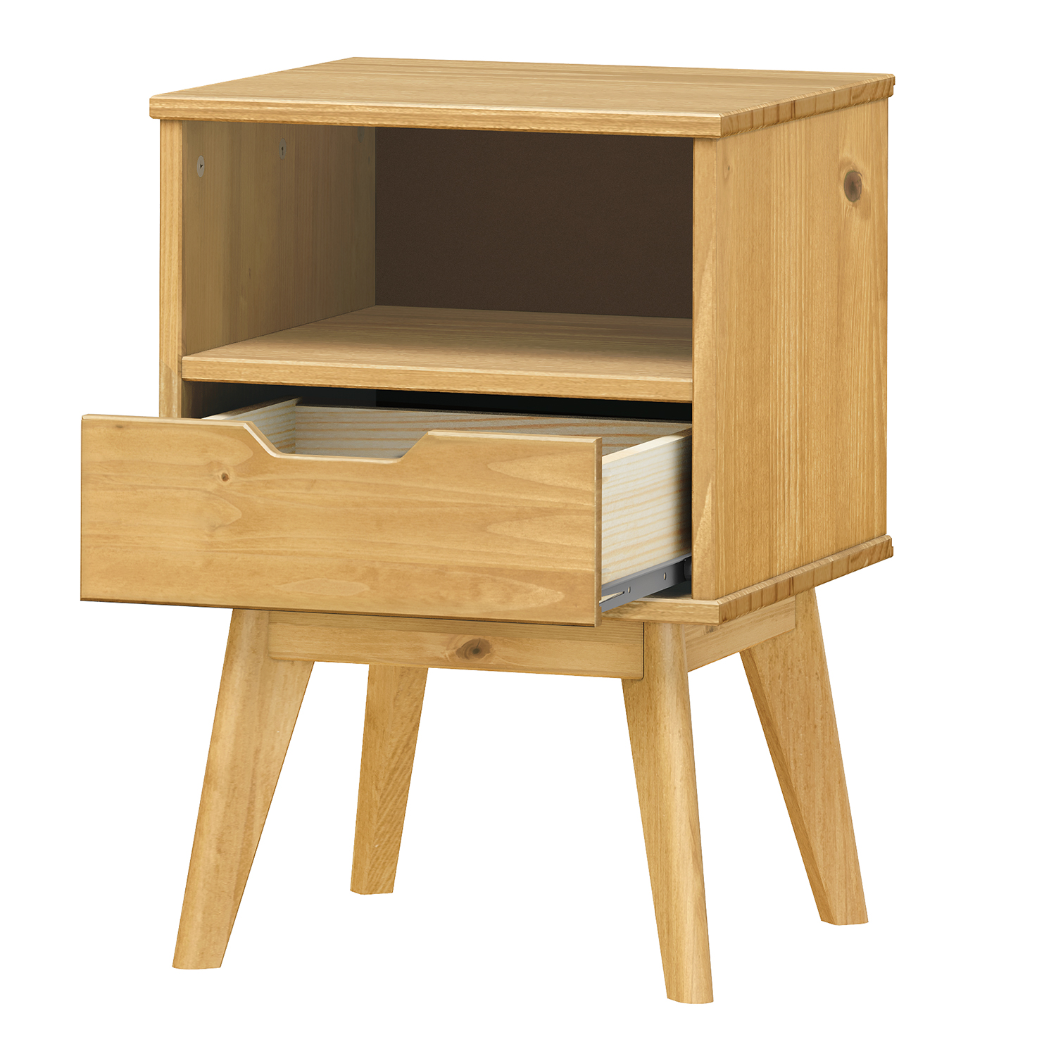 Nielen v spálni rodičov je potrebný nočný stolík, aj deti a študenti potrebujú vo svojej izbe tento praktický kúsok nábytku. Nočné stolíky sú pre nich rovnako nevyhnutné ako pre dospelých. Nočný stolík BONITO vosk bude dokonalým pomocníkom pri lôžku v prevedení masív borovica voskovaná v medovom odtieni. Jednoduchý stolík bude skvele slúžiť ako v detskej izbičke, tak aj v študentskej izbe. Miesto na odloženie chytrého mobilného telefónu, tabletu či knihy musí byť hneď vedľa lôžka. Učením, čítaním, sledovaním filmov na tablete aj prezeraním sociálnych sietí totiž deti a dospievajúci trávia svoj čas pred spaním a potom hneď po prebudení. Nočný stolík sa tak stane nepostrádateľným kúskom vedľa ich lôžka. Nočný stolík BONITO vosk zložený zo zásuvky a otvorenej police bude slúžiť na odkladanie najrôznejších vecí a priestor s lôžkom už bude vhodný nielen na odpočinok, ale aj zábavu a relaxáciu.