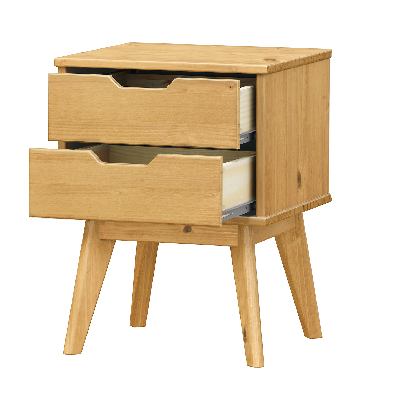 Nočný stolík BONITO z masívneho borovicového dreva voskovaného v medovom odtieni je ukazovateľ elegancie, šarmu a moderného dizajnu. Tento nočný stolík je ideálnym doplnkom pre vaše spálne. Ponúka praktický úložný priestor a esteticky príjemný vzhľad. Stolík BONITO je vyrobený z kvalitného materiálu, čo zaisťuje jeho pevnosť a dlhú životnosť. Medová farba stolíku dodáva jednoduchosť a sviežosť. Je vybavený dvoma zásuvkami s kovovými pojazdmi, ktoré vám umožnia uloženie kníh, osobných predmetov či iných vecí, čo chcete mať pri posteli po ruke. Na vrchnej doske stolíka je samozrejme dostatok miesta aj na lampičku, aby ste si večer mohli v posteli čítať vašu obľúbenú knihu, alebo napríklad na budík. Jeho čisté línie a minimalistický vzhľad ho robia vhodným pre rôzne štýly spálne. Skvele doplní vašu spálňu, ale využitie môžete nájsť aj napríklad v obývacích priestoroch alebo v predsieni.