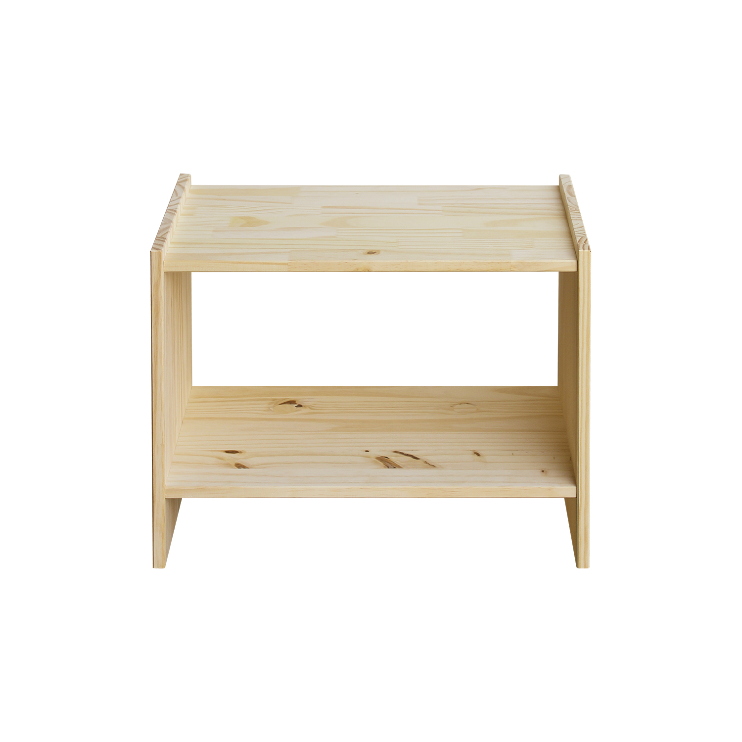 Jednoduchý nočný stolík vám vždy poslúži hneď po boku vášho lôžka. Na pevný nočný stolík 7815 v prevedení masív borovica odložíte ako rozčítané časopisy a knihy, tak najrôznejšie drobnosti. Policový nočný stolík bude stáť v detskej izbe alebo v spálni. Vďaka jednoduchému dizajnu stolík využijete aj v predsieni ako stojan na kvetiny či na vystavenie väčších dekorácií. Nočný stolík v prevedení masív borovica sa bude najlepšie hodiť do priestorov vybavených práve masívnym nábytkom. Je na vás, či a ako dokončíte jeho povrchovú úpravu. Nočný stolík vám zaistí neustály poriadok vedľa vašej postele, a to aj po nočnom učení či prečítaní časopisov, všetko jednoducho zarovnáte do pevných políc. Užívajte si dokonalú pohodu a nevstávajte na pitie, diaľkové ovládanie ani noviny, nočný stolík je v tomto ohľade na nezaplatenie.