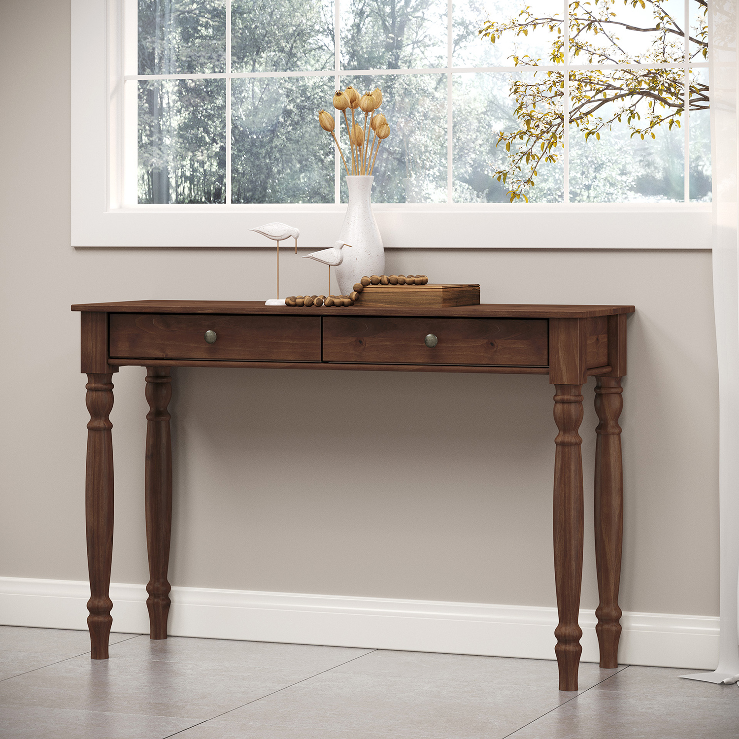 Odkladací stôl RUBI v tmavo hnedom lakovanom prevedení je poctivý kúsok z masívnej borovice, ktorý ponúka dve zásuvky s hladko vedenými kovovými pojazdmi. Stolík pôsobí stabilne a napriek tomu ľahko vďaka decentnému designu. Povrch s tmavým lakom zanecháva pocit prírodnej hĺbky a tepla a pritom uľahčuje údržbu aj v každodennej prevádzke.