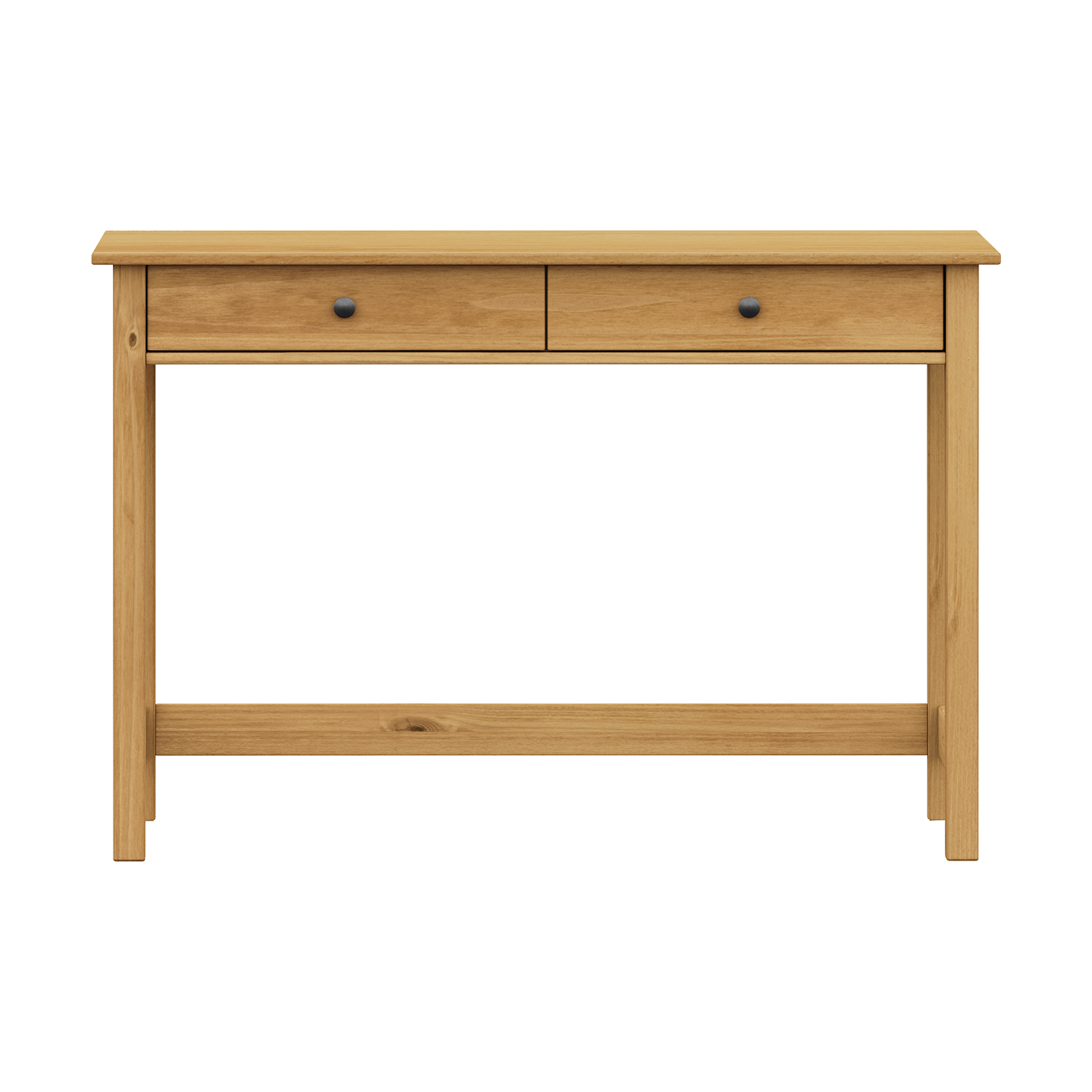 materiál masív borovica voskovaná v medovom odtieni kovové úchytky vo farebnom prevedení černená mosadz 2 zásuvky s kovovými pojazdmi