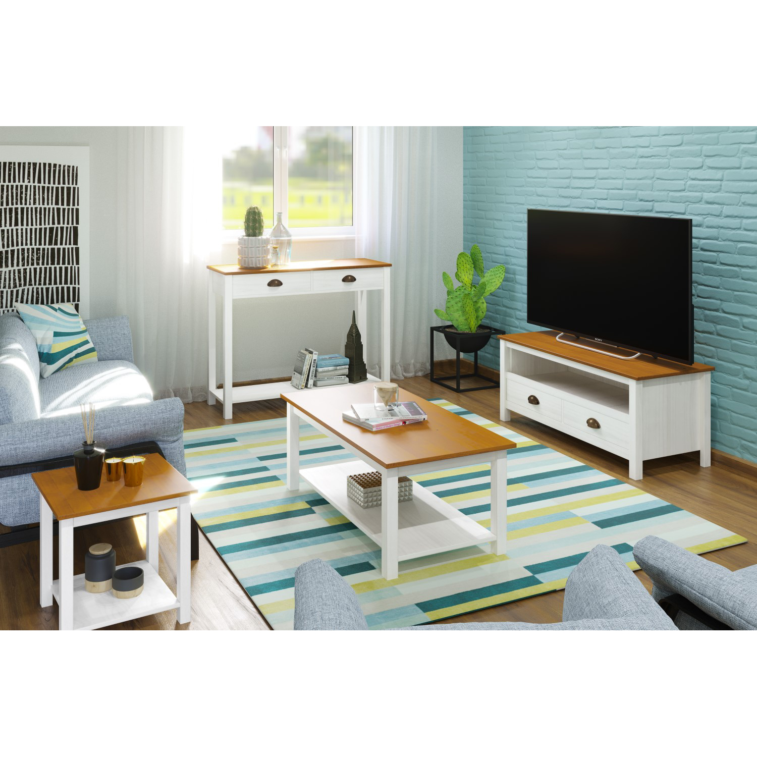 Moderné ženy sa nezaujímajú iba o módu, ale majú tiež starosť o to, akým nábytkom bude vybavené ich bývanie. Biela farba nábytku potom pôsobí na ženy doslova ako magnet. Odkladací stolík TOPAZIO ženy zaručene chytí za srdce, krásny stolík dotiahne k dokonalosti priestor spálne, doplní nábytok v obývacej izbe, či vás bude vítať hneď v predsieni. Biely stolík ponúka dve praktické zásuvky na uloženie drobných vecí, kozmetiky a dokumentov. Na plochu stolíka potom možno postaviť zrkadlo na úpravu zovňajšku, fotografiu milovanej osoby, v chodbe potom naň umiestnite misku na odloženie kľúčov. Pre intímnu atmosféru spálne postavíme na plochu stolíka lampičku či svietnik a pre izbu plnú romantiky vázu plnú kvetov. Spodnú policu odporúčame nechať voľnú, možno ju však vybaviť aj obľúbenými boxmi. Odkladací stolík musí mať každá moderná žena. Odkladací stolík TOPAZIO je súčasťou zostavy TOPAZIO, vaša izba tak môže byť romantickou atmosférou doslova pretkaná.
