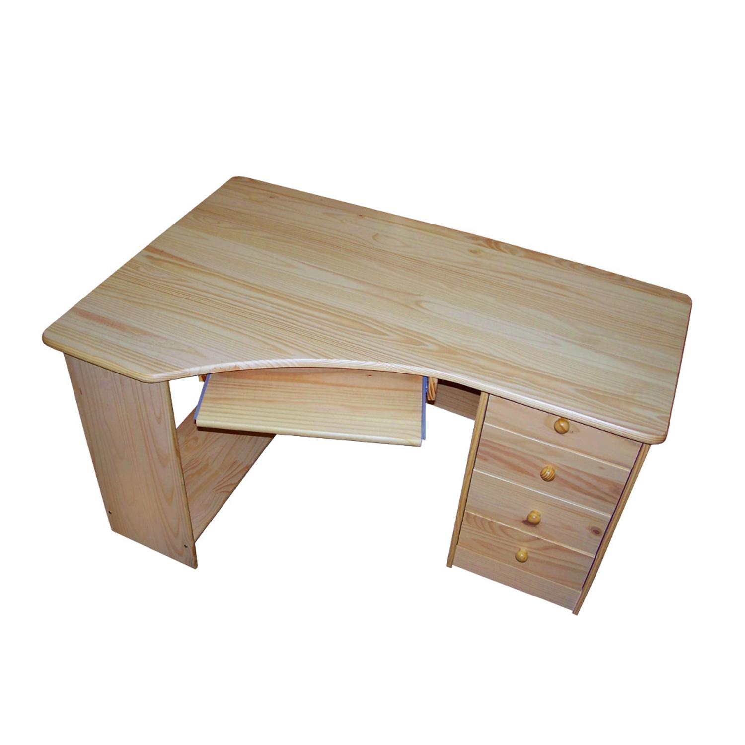 Zariaďovanie detskej izby či pracovne musí začínať vždy od kvalitného a pevného pracovného stola. Aj do menšej izby môžete vybrať robustný stôl, pokiaľ pre neho nájdete vhodné miesto. Keď zvolíte voľný roh, tak ušetríte nezanedbateľný priestor vašej izby. PC stôl rohový 8846 je vhodným kúskom ako do študentského bytu, tak do pracovne rodinného domu, pri stolnom počítači totiž môžu pracovať všetci. PC stôl rohový 8846 v prevedení masív borovice krásne zaplní voľný roh a poskytne miesto na počítač, obrazovku aj výsuv na klávesnicu. Štyri zásuvky s kovovými pojazdmi potom pojmú knihy, zošity aj najrôznejšie dokumenty. Pri rohovom stole sa vám bude pohodlne pracovať aj odpočívať pri hraní hier, sledovaní filmov či prezeraní internetových stránok. Masívny nábytok je veľmi kvalitný a v našej ponuke nájdete naozaj širokú škálu produktov z masívu, takže ľahko kompletne vybavíte akúkoľvek izbu. Pokiaľ teda chcete tento krásny stôl umiestniť do detskej izby, pracovne či dokonca do spálne, vždy u nás nájdete vhodný nábytok v rovnakom materiálovom prevedení. K rohovému stolu bude najlepšie sedieť pohodlná stolička na kolieskach, od stola sa totiž nebudete musieť zdvíhať a práca vám pôjde oveľa rýchlejšie. Či už pracujete na počítači, alebo zapisujete údaje do zošita, pri rohovom stole vám práca pôjde od ruky. Pracovný kút vo vašom byte bude mať vďaka tomuto praktickému stolu navždy svoje stále miesto.