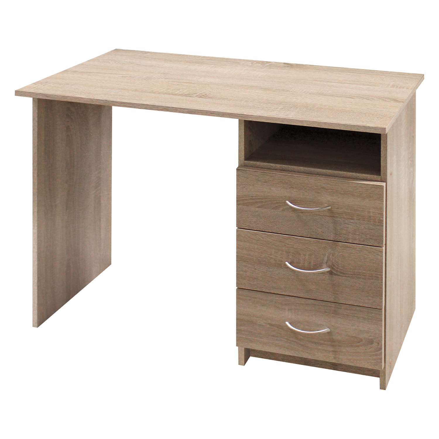 Písací stôl 50044 v prevedení dub Sonoma vám pomôže s realizáciou vašich snov. Za jednoduchým a príjemne farebným stolom sa vám budú nápady len hrnúť a keby predsa len došlo k syndrómu vyhorenia či náhlej strate pamäte, stačí siahnuť do jednej z troch zásuviek a vytiahnuť inšpiráciu či učebné materiály. Písací stôl s montážou zásuviek na pravú stranu bude so cťou slúžiť ako pracovitým jedincom, tak usilovným študentom. Na dosku stola sa ľahko zmestí notebook aj obrovský hrnček kávy, a to tento stôl nezaberie toľko priestoru ako veľké počítačové stoly. Jednoduchý stôl vo vašej pracovni je teda kľúčovým kúskom nábytku, ktorý vám pomôže s prvými úspechmi, ostatné potom príde samo.