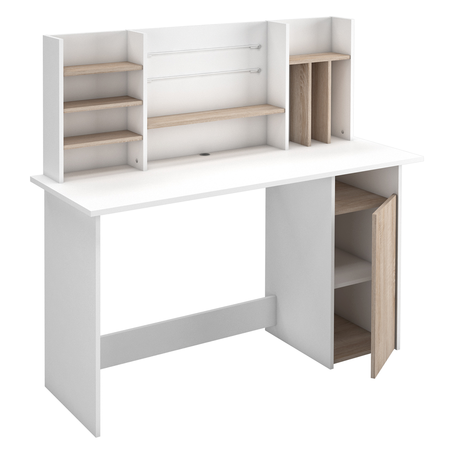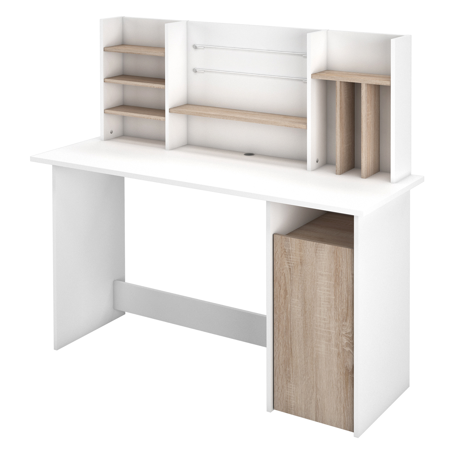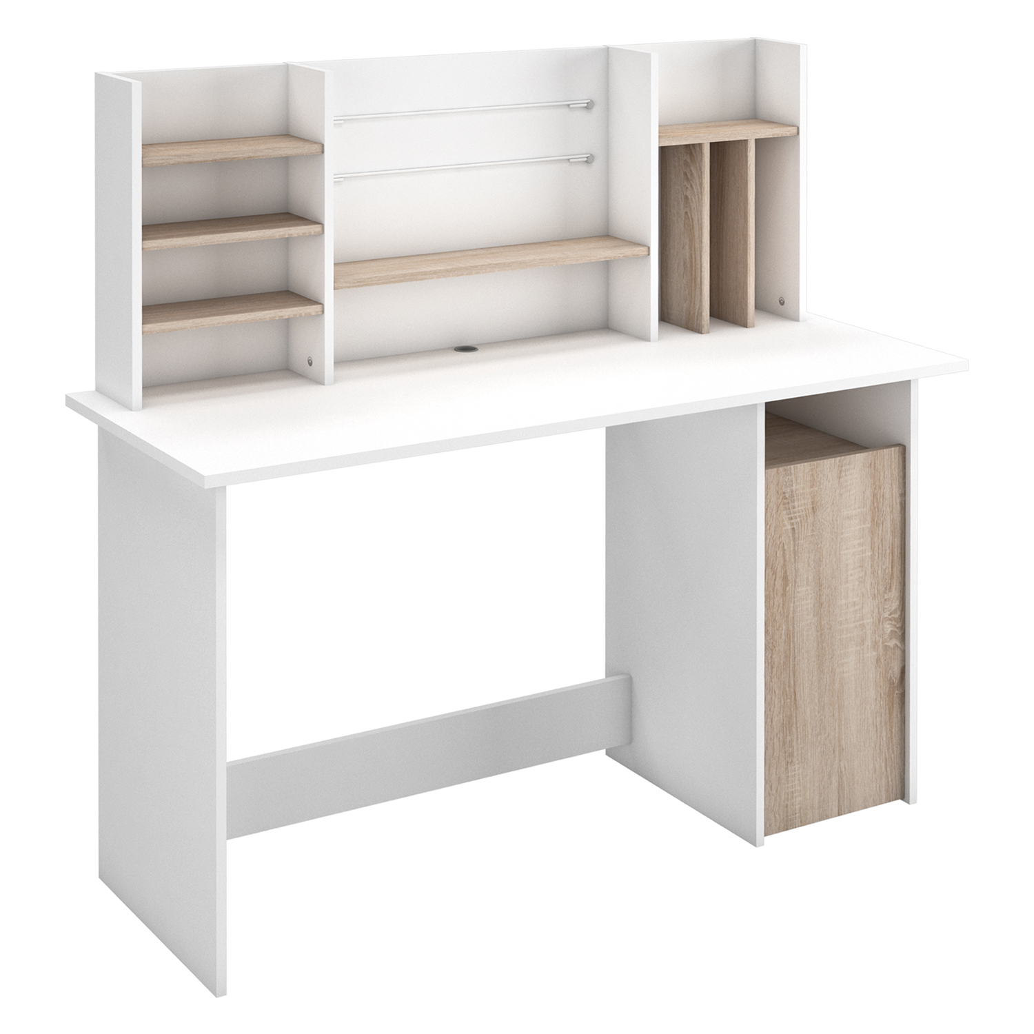 Stôl AMBRE sa krásne hodí do každej modernej miestnosti, vďaka jeho dekoru dub Sonoma / biela a otvoreným policiam si ho môžete zariadiť podľa svojho vkusu. Do políc sa zmestia bábiky a rozprávkové knihy, ako aj učebnice alebo pracovné dokumenty. Na priestranných policiach sa však budú krásne vynímať aj rôzne dekorácie alebo rodinné fotografie. Váš písací stôl tak bude odrážať váš životný štýl a vkus. Moderný svetlý písací stôl nájde svoje uplatnenie nielen v kanceláriách a pracovniach, ale aj v spálni, detskej izbe alebo garsónke, jednoducho všade tam, kde nielen pracujete, ale aj bývate. Tento krásny písací stôl udrží krok s rýchlym životným tempom a bude vám vždy dobre slúžiť.