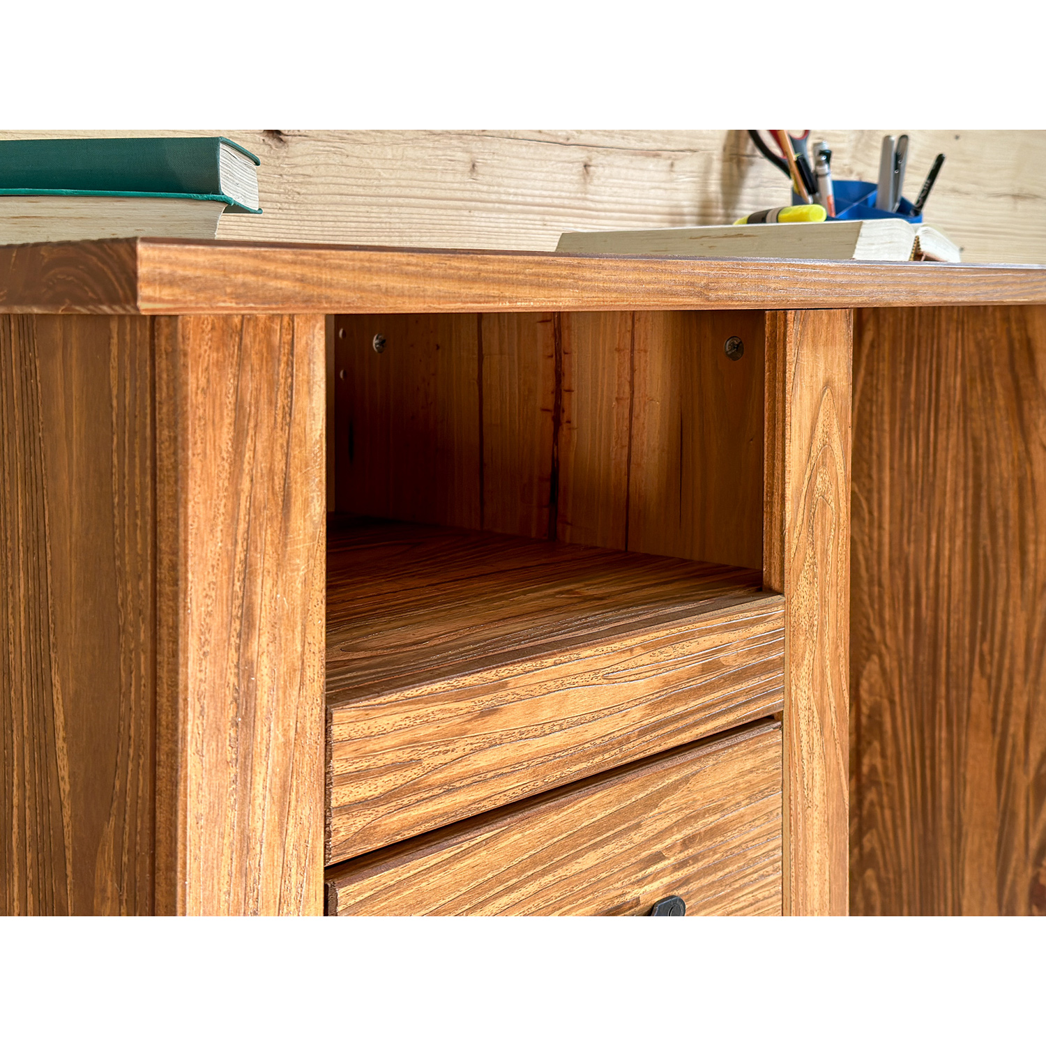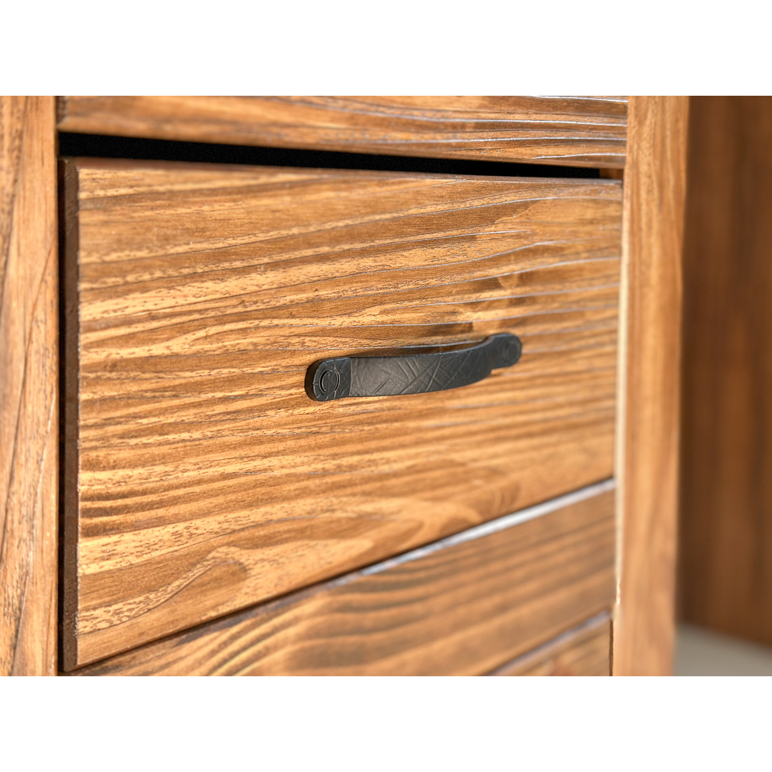 Kód produktu: 26831materiál masív borovica, farebné prevedenie dub antik lakované čírym lakom, vlis drevenej štruktúry 2 dvierka, 2 police, 3 zásuvky súčasť zostavy EL DORADO
