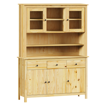 Kód produktu: 8095Kmateriál masív borovica, lakované prevedenie kovové úchytky vo farebnom prevedení černená mosadz 2 presklené dvere, 1 polica nadstavec príborníka 8095K