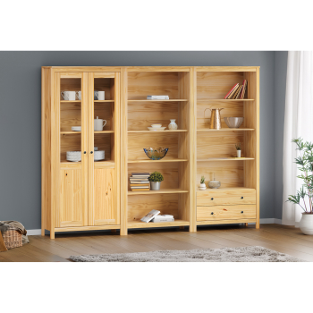 Kód produktu: 68062Kzostava knižníc TORINO 8070 a 8071K a vitríny TORINO 8072K materiál masív borovica, lakované prevedenie kovové úchytky vo farebnom prevedení černená mosadz knižnica 8070: štyri police knižnica 8071K: tri police, dve zásuvky s kovovými pojazdmi vitrína 8072K: dvoje čiastočne presklené dvere, štyri police rozmer knižnice 8070 (š/h/v) 85 × 37 × 190 cm rozmer knižnice 8071K (š/h/v) 85 × 37 × 190 cm rozmer vitríny 8072K (š/h/v) 85 × 37 × 190 cm