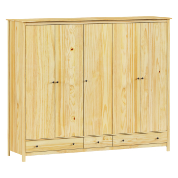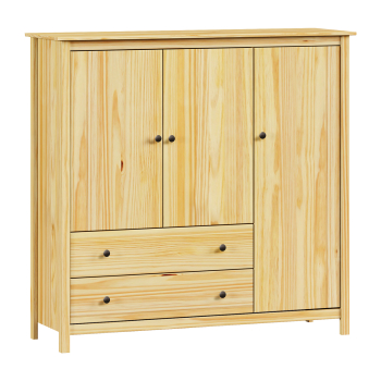 Kód produktu: 8068Kmateriál masív borovica, lakované prevedenie kovové úchytky vo farebnom prevedení černená mosadz priestor delený v pomere 2:1:2 v ľavej a pravej širšej časti šatníková tyč a polica na klobúky v strednej úzkej časti 3 police v spodnej časti 3 zásuvky s kovovými pojazdmi odporúčaný nadstavec 8169K