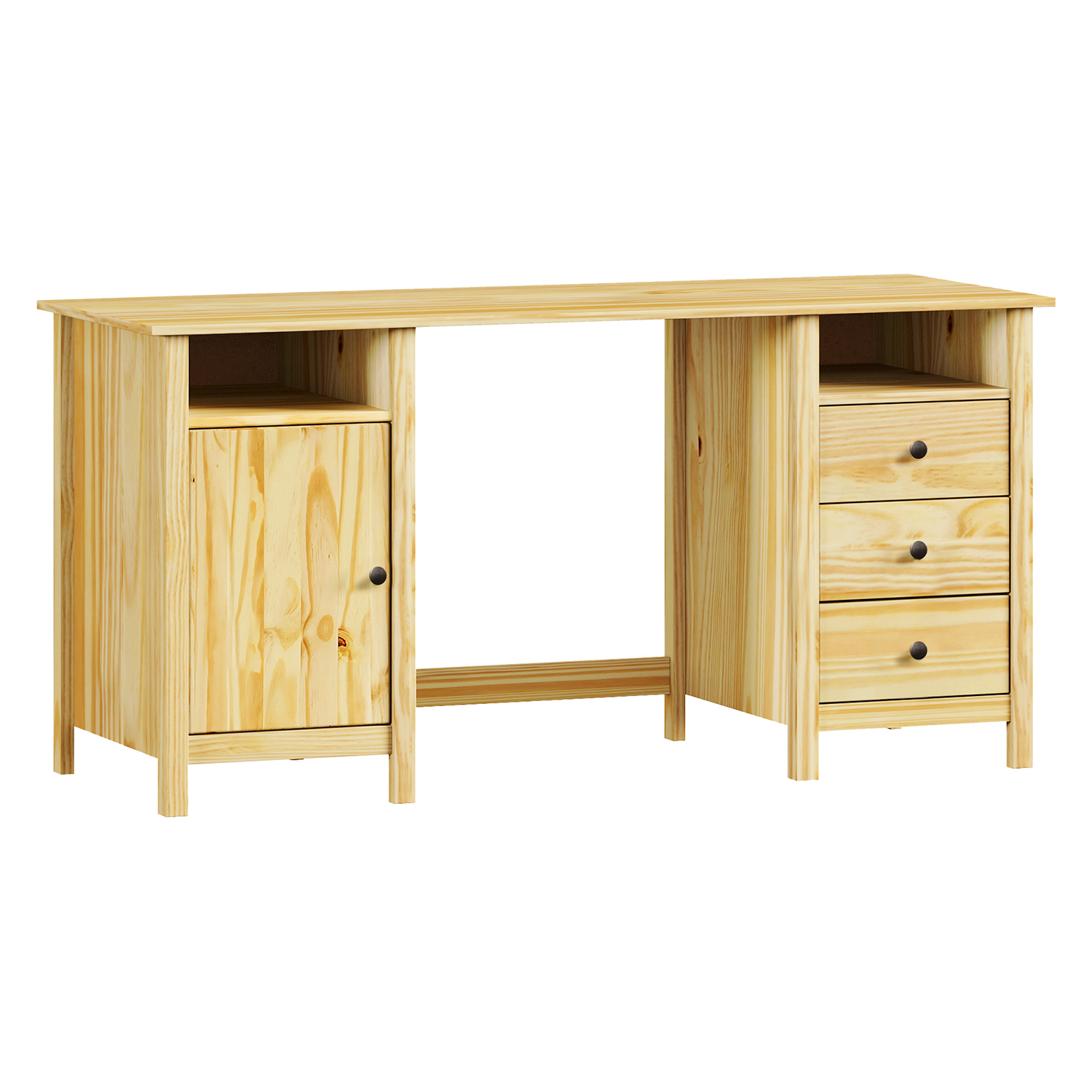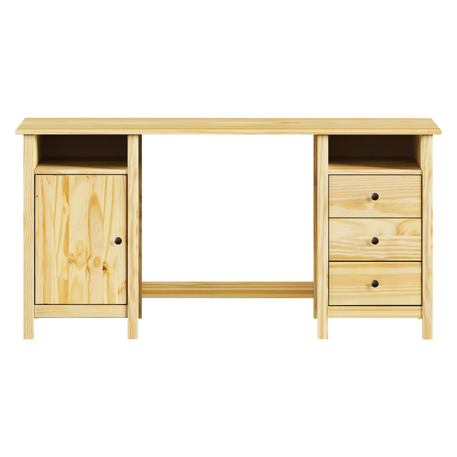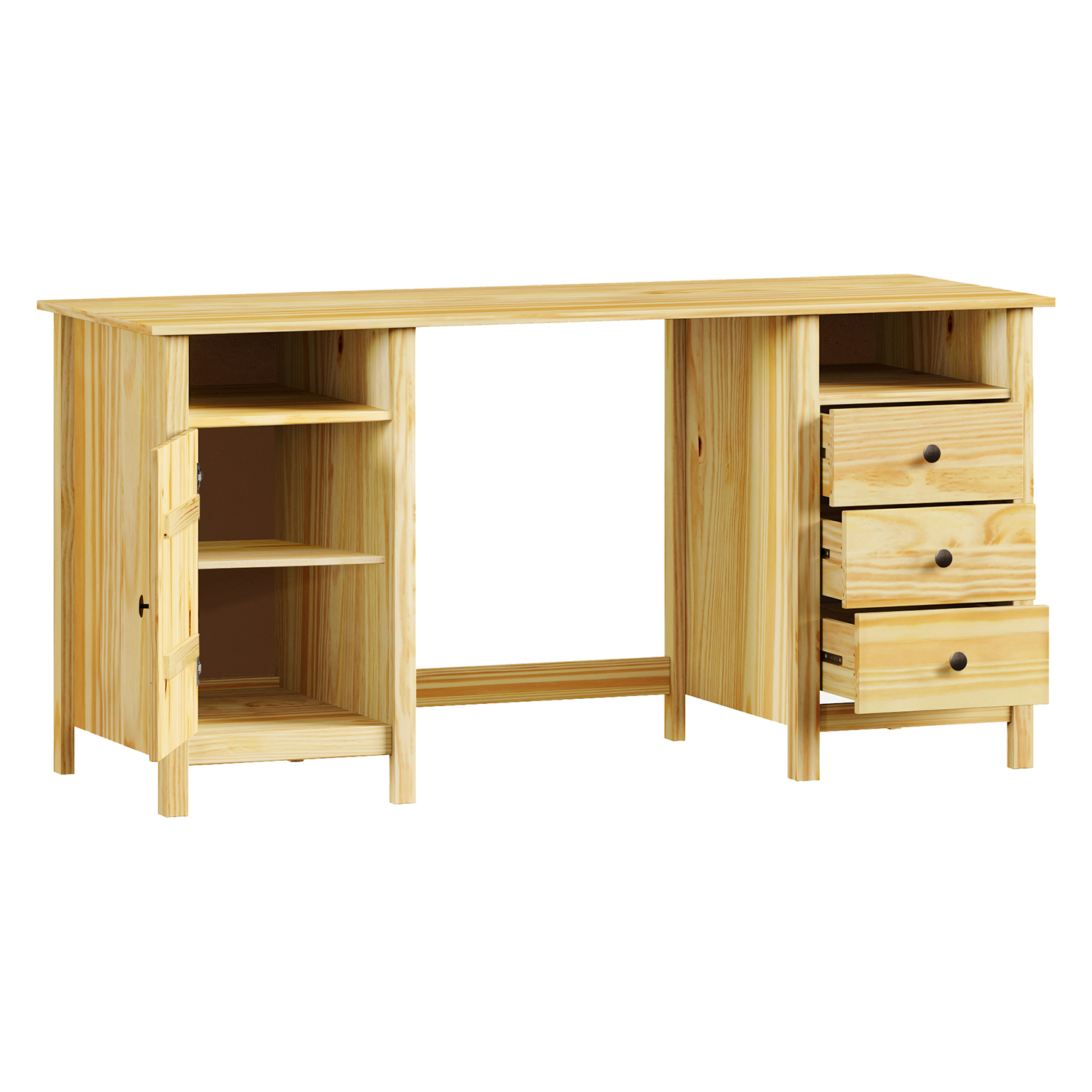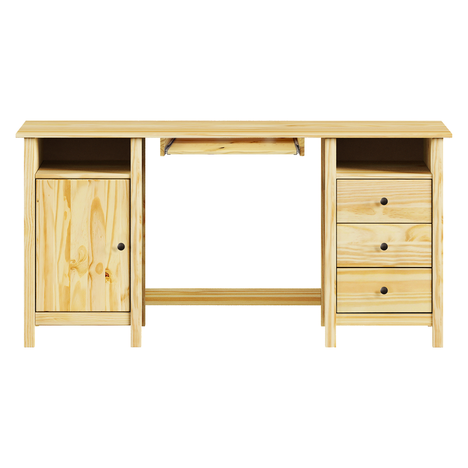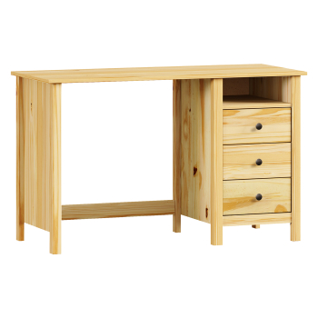 Kód produktu: 8089Kmateriál masív borovica, lakované prevedenie kovové úchytky vo farebnom prevedení černená mosadz 3 zásuvky s kovovými pojazdmi, 1 polica výsuv nie je súčasťou dodávky k stolu je možné dokúpiť výsuvnú dosku na klávesnicu 8840