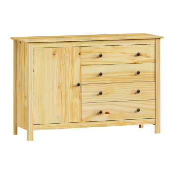 Kód produktu: 8077Kmateriál masív borovica, lakované prevedenie kovové úchytky vo farebnom prevedení černená mosadz 1 dvierka a 4 zásuvky s kovovými pojazdmi