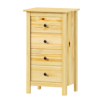 Kód produktu: 8097Kmateriál masív borovica, lakované prevedenie kovové úchytky vo farebnom prevedení černená mosadz 4 zásuvky s kovovými pojazdmi