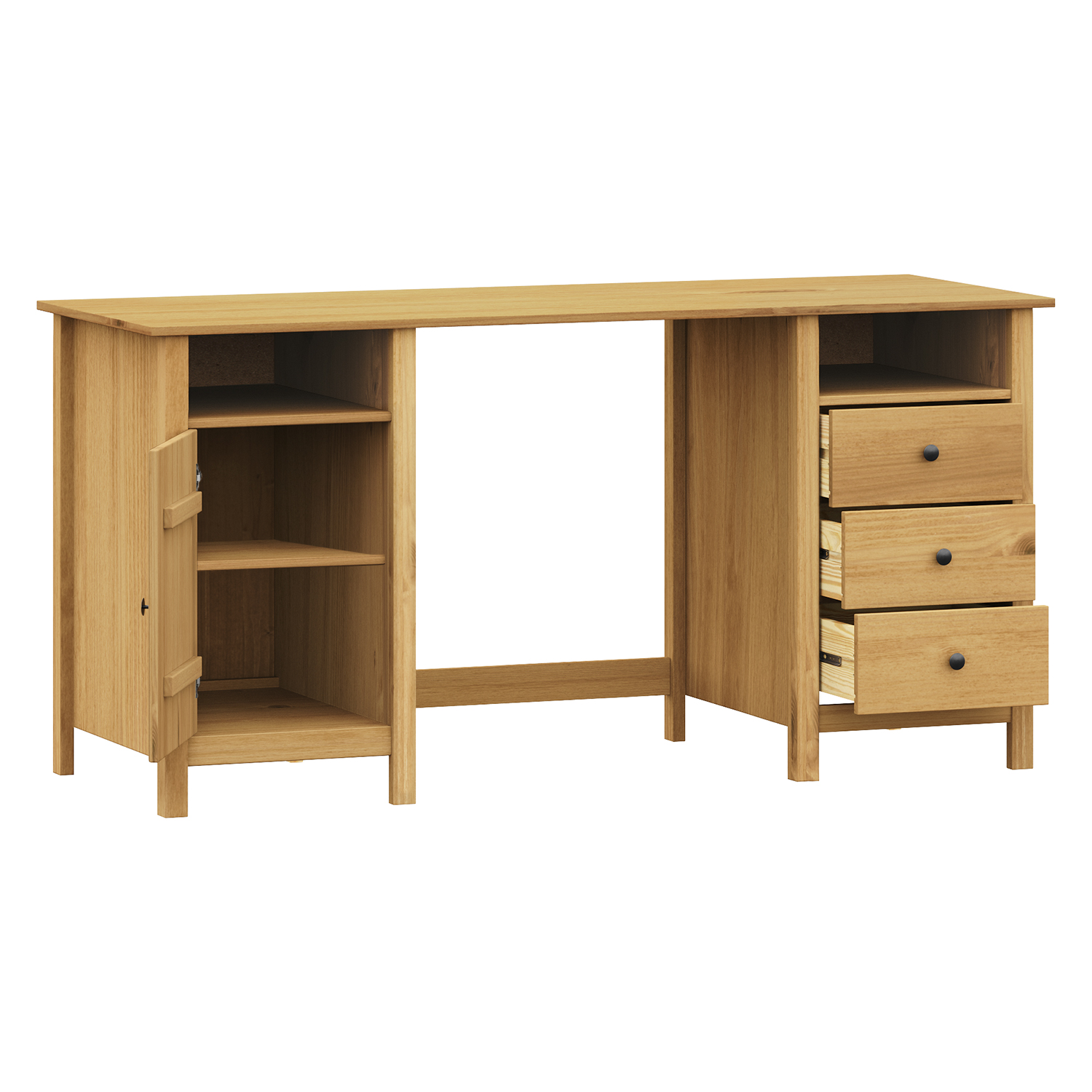 Kód produktu: 8078Vmateriál masív borovica voskovaná v medovom odtieni kovové úchytky vo farebnom prevedení černená mosadz tri police, dve zásuvky s kovovými pojazdmi