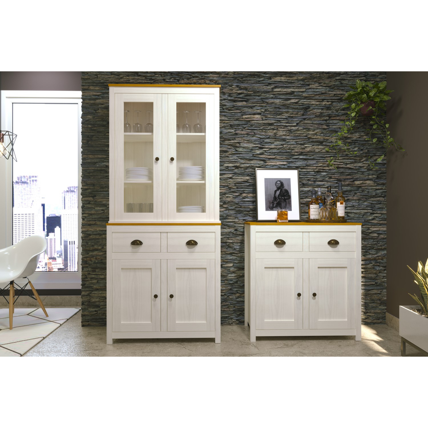 Biely nábytok TOPAZIO vytvorí krásne a útulné prostredie s dokonalou dedinskou atmosférou, a to aj vo vašom modernom mestskom byte. Príborník 2 dvere + 2 zásuvky TOPAZIO postavíte do najrôznejších priestorov. Príborník v prevedení masív borovica obsahuje dve zásuvky s kovovými pojazdmi a úložný priestor s policou opatrený dvierkami. Príborník nie je iba skvelou voľbou do jedálne na príbory a hrnce, ale v obývacej izbe poslúži ako komoda na dokumenty, v spálni ako bielizník na bielizeň, v predsieni potom do neho uschováte najrôznejšie doplnky. Biely príborník s hnedou vrchnou doskou a výraznými úchytkami na zásuvkách bude ozdobou každej izby. Pokiaľ sa rozhodnete umiestniť aj najrôznejšie doplnky na jeho plochu, odporúčame kvety, fotky či veľké zrkadlo. S nábytkom TOPAZIO bude vaše bývanie na jednotku.