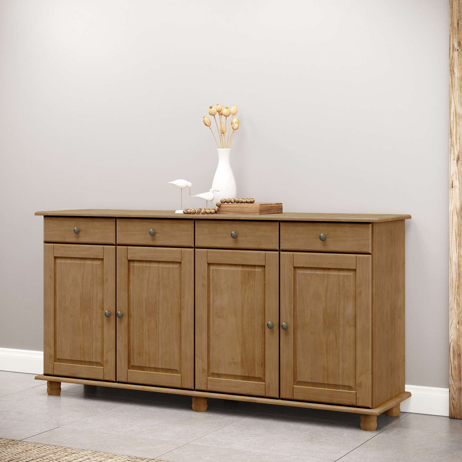 Kód produktu: 267431Dmateriál masív borovica, farebné prevedenie tmavo hnedá 4 dvere, 4 zásuvky s kovovými pojazdmi, 2 police