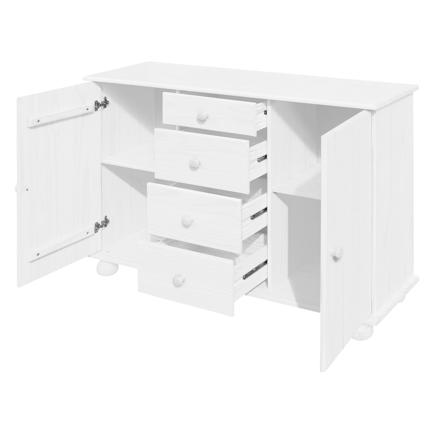 Kód produktu: 8844Bmateriál masív borovica, farebné prevedenie biely lak 3 zásuvky s kovovými pojazdmi, skrinka s dvierkami rozmer zásuvky (š/h/v) 27,9 × 30,7 × 10,6 cm bez výsuvu pre klávesnicu