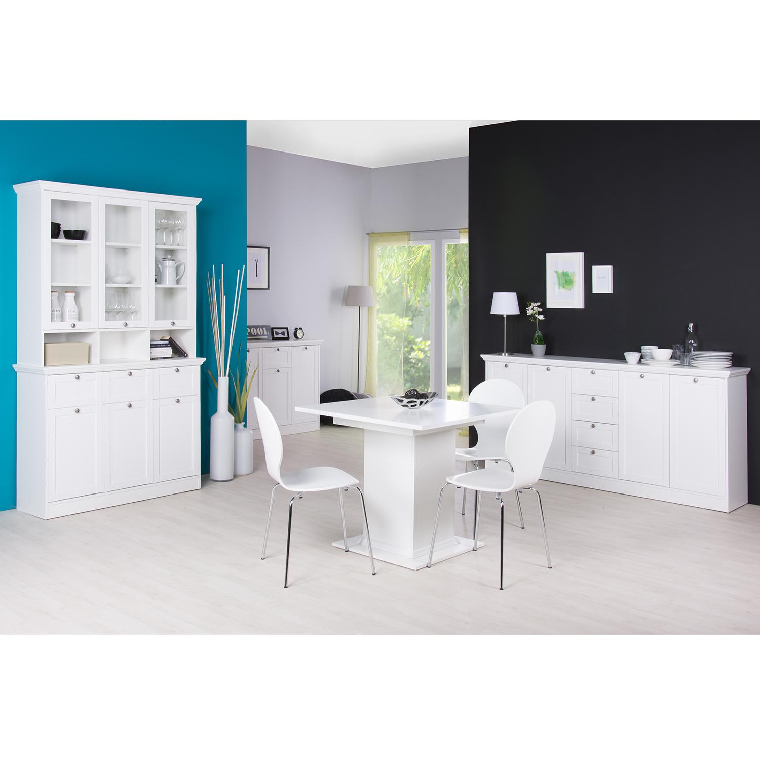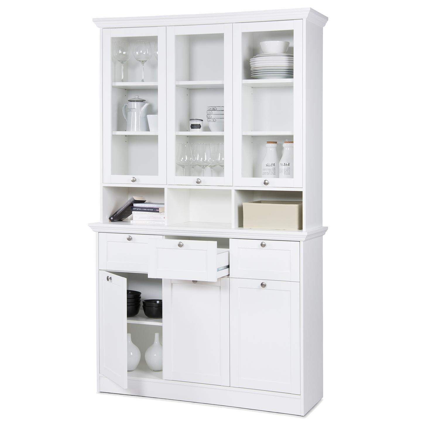 Staré dobré príborníky sa vracajú do našich jedální a kuchýň. Podľahnite aj vy kúzlu poctivého vidieka a postavte si do jedálne krásny biely príborník. Príborník LANDWOOD 50 vo farebnom prevedení biela krásne presvetlí miestnosť a naplní ju pokojom a pohodou. Veľký príborník dokonale ozdobí jedálenský kút, za presklené dvierka vyskladáte do políc váš obľúbený riad či najrôznejšie pomôcky a dekorácie určené do kuchyne. Do troch otvorených políc uprostred príborníka odložíte veci, ktoré potrebujete mať po ruke, či tento priestor vyplníte menšími škatuľami a boxmi. Tri zásuvky potom pojmú všetky príbory a kuchynské náčinie a tri spodné skrinky opatrené plnými dvierkami uschovajú plechy, pekáče, panvičky a pokrievky. V skrinkách sa nachádza polica, ktorá delí priestor. Príborník LANDWOOD je súčasťou zostavy Landwood, vaša jedáleň tak môže byť vybavená dokonale ladiacim nábytkom. Biely nábytok s úchytkami starožitného vzhľadu vytvorí v jedálni príjemnú atmosféru, v ktorej sa bude cítiť dobre nejedna návšteva. Príborník bude vo vašej jedálni výrazným a predovšetkým praktickým kúskom nábytku, ktorý vám bude pri varení výborných pokrmov i následnom servírovaní vždy nápomocný. Dajte príborníku opäť priestor vo vašej jedálni a navráťte tento tradičný kúsok nábytku v novom dizajne do vašej jedálne.