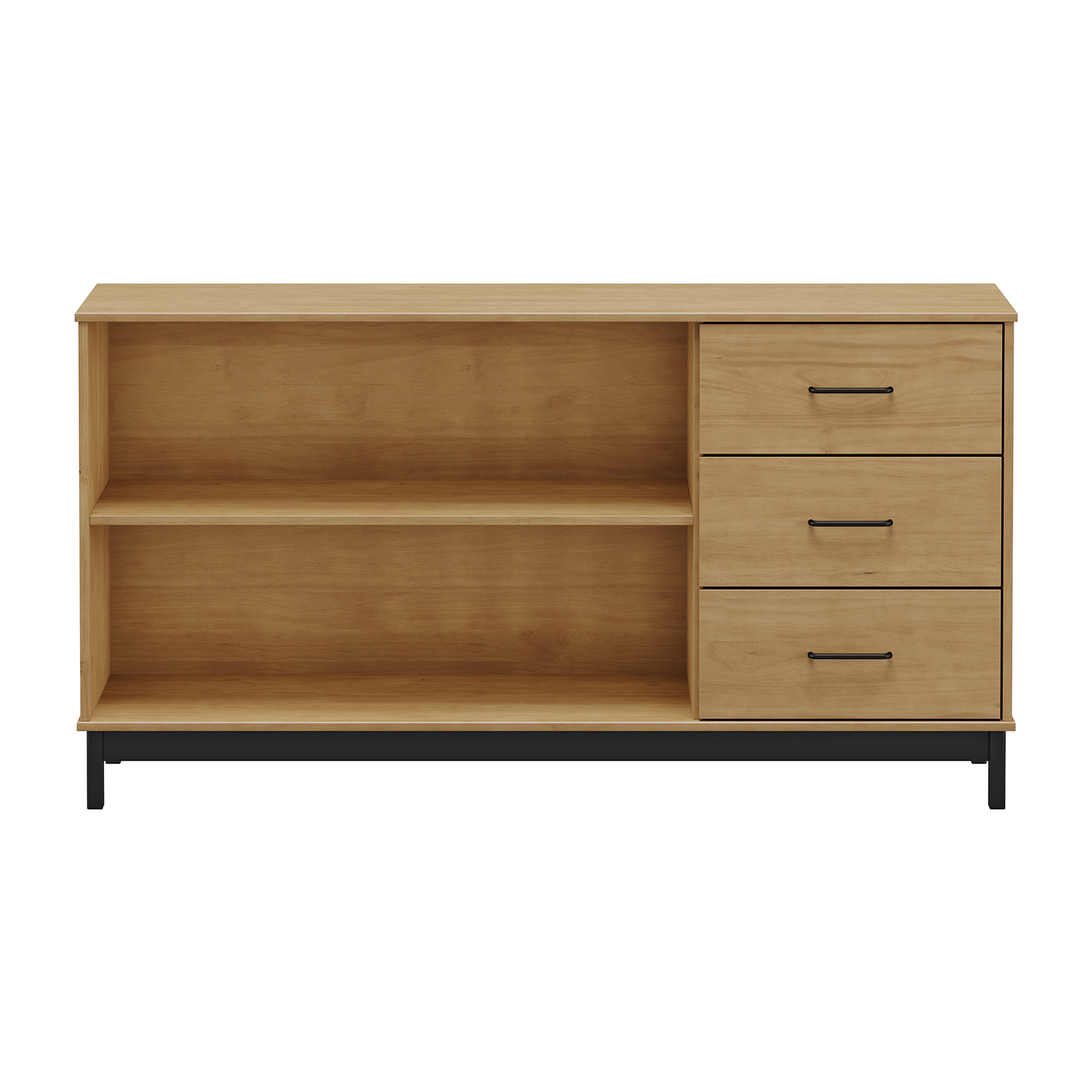 Vneste do svojho domova teplo prírody a eleganciu s naším príborníkom z borovicového masívu v krásnom bukovom prevedení. Tento príborník je dokonalou kombináciou funkčnosti a štýlu, čo je ideálné do každého interiéru. Robustná konštrukcia z masívneho borovicového dreva zaručuje dlhú životnosť a odolnosť, zatiaľ čo buková povrchová úprava prináša teplý a svieži vzhľad. Elegantné čierne nohy a čierne kovové úchytky dodávajú príborníku moderný a sofistikovaný nádych. Príborník ponúka praktické riešenie úložného priestoru s tromi zásuvkami vybavenými kovovými pojazdmi, ktoré zaručujú hladký a tichý chod. Zásuvky poskytujú dostatok priestoru na uloženie príborov, obrúskov a iných drobností, zatiaľ čo dve dvierka odkrývajú priestrannú policu, ktorá je ideálna na uloženie riadu, pohárov alebo kuchynského náčinia. Tento príborník nielenže skvele vyzerá, ale pomôže vám aj udržať poriadok a štýl vo vašej kuchyni alebo jedálni. Vneste do svojho domova harmóniu a praktickosť s týmto krásnym príborníkom, ktorý zaručene upúta pozornosť a stane sa nepostrádateľným kúskom vo vašej domácnosti.