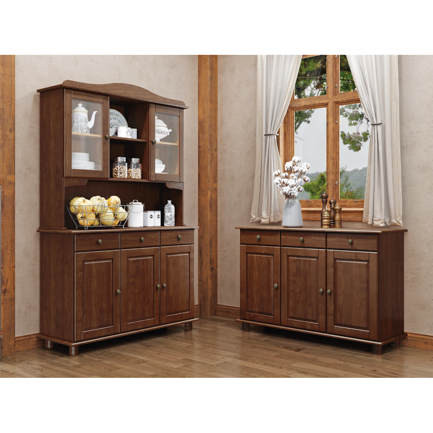 materiál masív borovica, farebné prevedenie tmavo hnedá