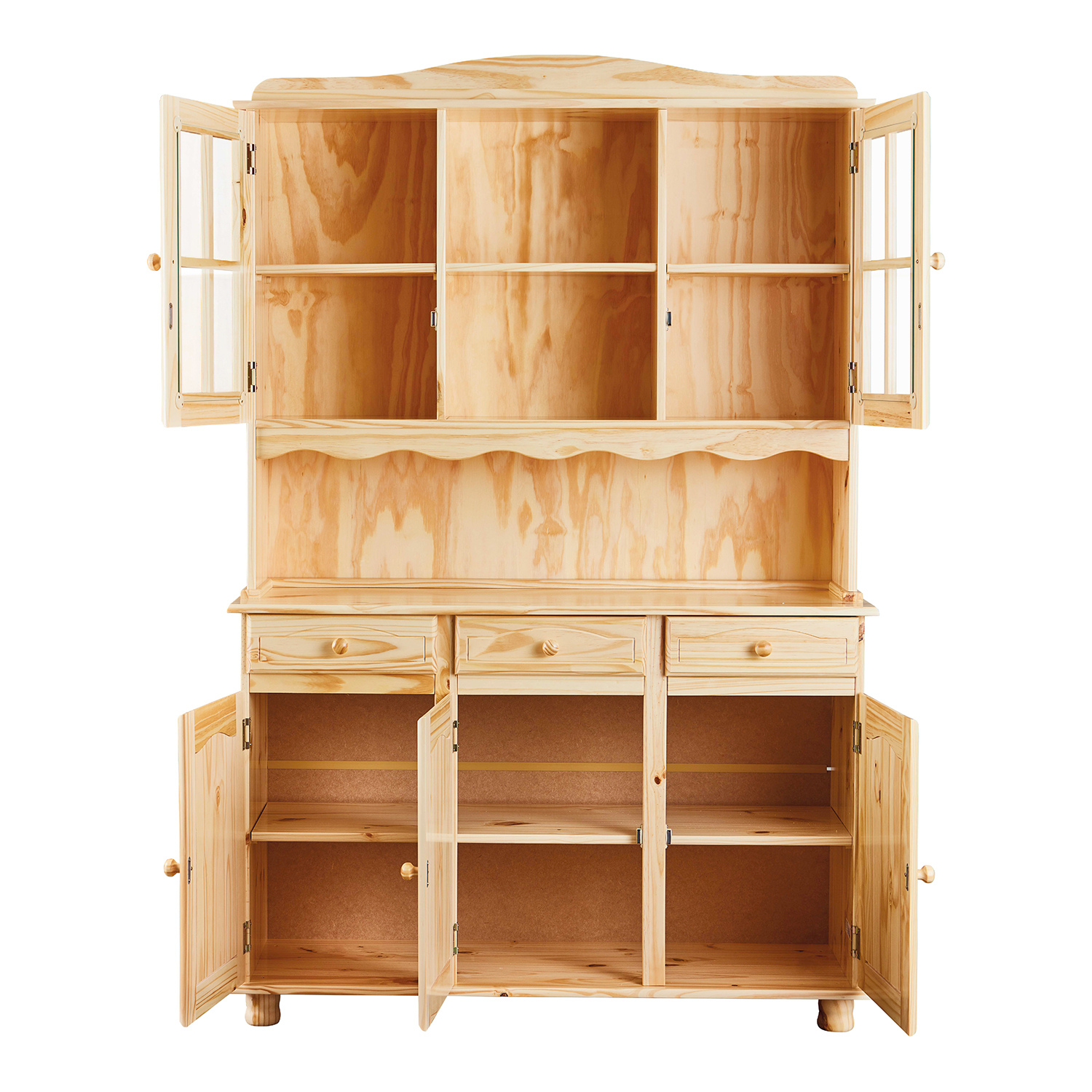 Príborník TOSCANA 8059 sa stane obdivovaným kúskom nábytku aj vo vašej kuchyni. Staré dobré kúsky kuchynského nábytku sú dnes opäť v móde a tento príborník z lakovaného borovicového masívneho dreva v retro designe si zamilujete. Nielenže tento príborník vyzerá naozaj krásne, ale má aj šikovne riešený úložný priestor, ktorý dobrá kuchárka určite ocení. Príborník TOSCANA obsahuje tri zásuvky s kovovými pojazdmi a troje plné dvierka v dolnej časti. V hornej časti má potom dvoje presklené dvierka a veľa políc. Do príborníka tak uložíte za dvierka hrnce, plechy a panvičky, do zásuviek potom dáte príbory a kuchynské náčinie. Všetky dvierka aj zásuvky majú okrúhle drevené úchytky. Nábytok v retro dizajne je stále obľúbenejší, majte aj vy vďaka príborníku všetko pekne po ruke a predveďte sa ako tá najlepšia kuchárka.