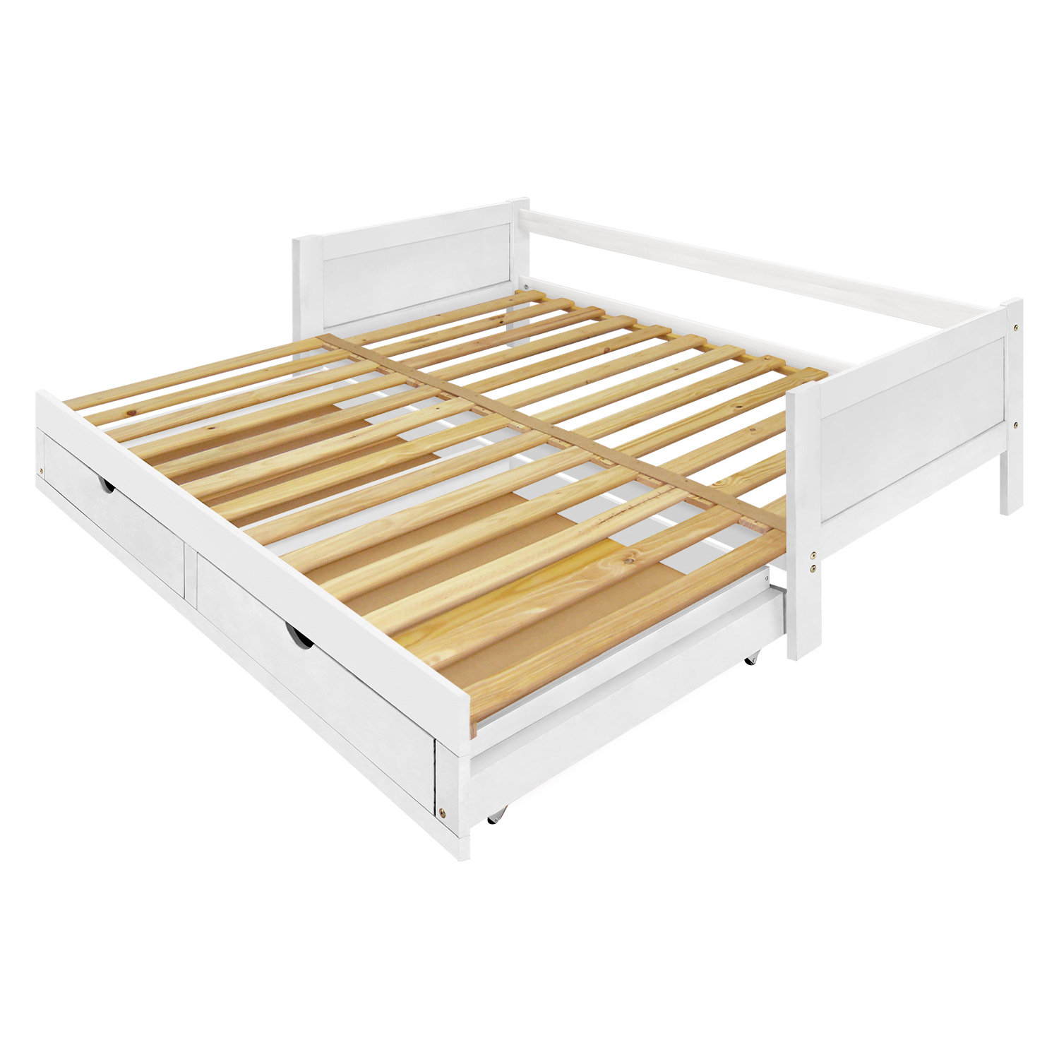 Do modernej detskej izby patrí moderné multifunkčné lôžko. Nebudete tak musieť riešiť neočakávané návštevy a časom s dospievaním vašej ratolesti výmenu lôžka za väčšiu. Zvoľte kvalitné rozkladacie lôžko DIANA, ktoré je vhodné nielen pre deti, ale aj dospelých. Rozkladacie lôžko DIANA je vyrobené z masívneho borovicového dreva, ktoré je nalakované bielym lakom. Vďaka konštrukcii je lôžko vhodné aj pre menšie deti, vďaka bočnici je chránené od chladnej steny, na bok lôžka je tak možné umiestniť aj čalúnený valec a premeniť ho počas dňa na pohodlnú pohovku. Praktické zásuvky, ktoré sa nachádzajú pod posteľou, pojmú veľa vecí, ktoré by zaberali miesto v izbe a robili tak neporiadok. Akonáhle príde váš vysokoškolák na víkend domov, bude mu jeho izba k dispozícii a ešte môže priviesť návštevu. Rozkladacie lôžko rýchlo a ľahko vyrieši prespanie, ďalšie je potom na vás.