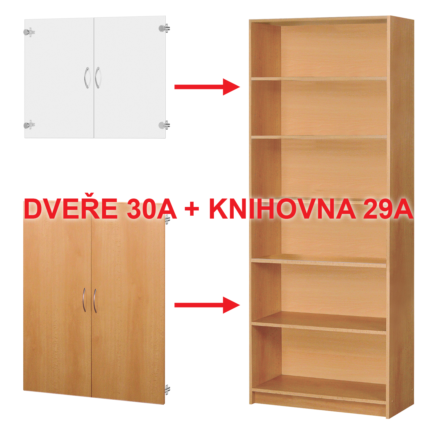 Pokiaľ sa vo vašej izbe nachádza knižnica 29A, alebo si ju hodláte zaobstarať, môžete ju vybaviť aj praktickými dvierkami. Dvierka zaistia, že veci, ktoré chcete mať vystavené, umiestnite do hornej časti za sklenené dvierka, a tie, ktoré chcete uschovať potom do spodnej časti za plné dvierka. Sklenené a drevené dvierka jednoducho pripevníte pánty. Na uložené a vystavené veci sa vám už nikdy nebude prášiť a izba bude pôsobiť ďaleko upravenejším dojmom. Knižnica vo farebnom prevedení buk vybavená dvierkami je vhodná ako na knihy, tak dokumenty, ktoré uschováte do spodnej časti za plné dvierka. Knižnica vybavená dvierkami teda poslúži ako v študentskej izbe, tak v kancelárii či domácej pracovni.