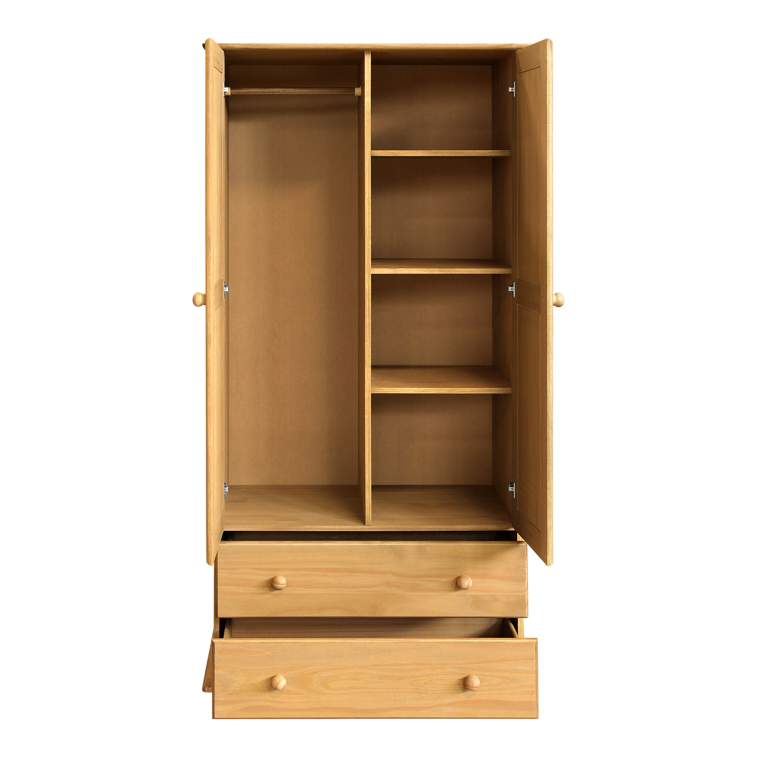 Dvojdverové skrine sú najlepším riešením do detských izbičiek a študentských izieb. Skriňa 2-dverová 8850 vo voskovanom prevedení krásne zapadne do každej izby zariadenej nábytkom v totožnom voskovanom prevedení. Praktická skriňa je delená na dve polovice. V jednej polovici skrine sa nachádza šatníková tyč, v druhej polovici potom tri police. V dolnej časti sú dve široké zásuvky s kovovými pojazdmi. Do skrine tak zavesíte zvršky aj poskladáte nohavice, na drobné doplnky je možné skriňu vybaviť najrôznejšími boxmi či krabicami. Šikovne delená dvojdverová skriňa sa hodí aj do hotelových izieb, podnájmov či iných ubytovacích zariadení. Svetlý nábytok vo voskovanom prevedení je totiž veľmi obľúbený a dá sa s ním jednoducho zariadiť celá izba.