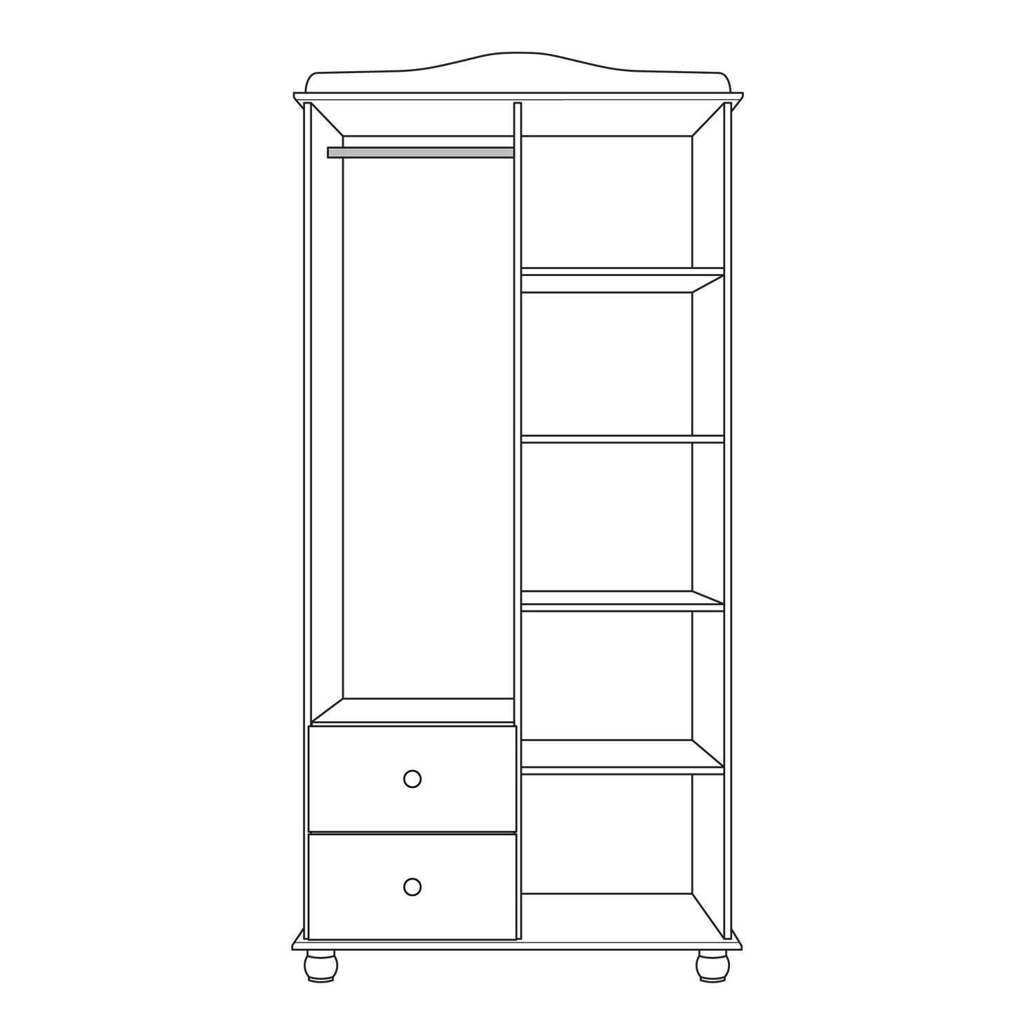 Masívna skriňa by nemala chýbať v žiadnej domácnosti, pokiaľ je navyše vaša spálňa vybavená nábytkom v prevedení masív borovica, voľte túto úžasnú skriňu. Skriňa 2-dverová GRAND PRIX v prevedení masív borovica lak sa bude hodiť do spálne aj šatne. Skriňa má priestor delený na polovice, v pravej časti nájdete štyri police, v ľavej časti dvere so zrkadlom, vo vnútri je kovová šatníková tyč, dole dve zásuvky s kovovými pojazdmi. Do skrine tak zavesíte, poskladáte aj uložíte všetky vaše veci vrátane spodnej bielizne. Do skrine je možné navyše umiestniť aj najrôznejšie krabice a boxy na doplnky a drobnosti. Masívny nábytok vyzerá vždy veľmi dobre, skriňa sa dá postaviť ako do spálne, tak do detskej izby či šatne. Skriňu 2-dverovú GRAND PRIX je možné umiestniť samostatne alebo po boku ďalších skríň GRAND PRIX. Prehľadne usporiadaný šatník, kde bude mať každá vec svoje stále miesto, vám ušetrí veľa času.