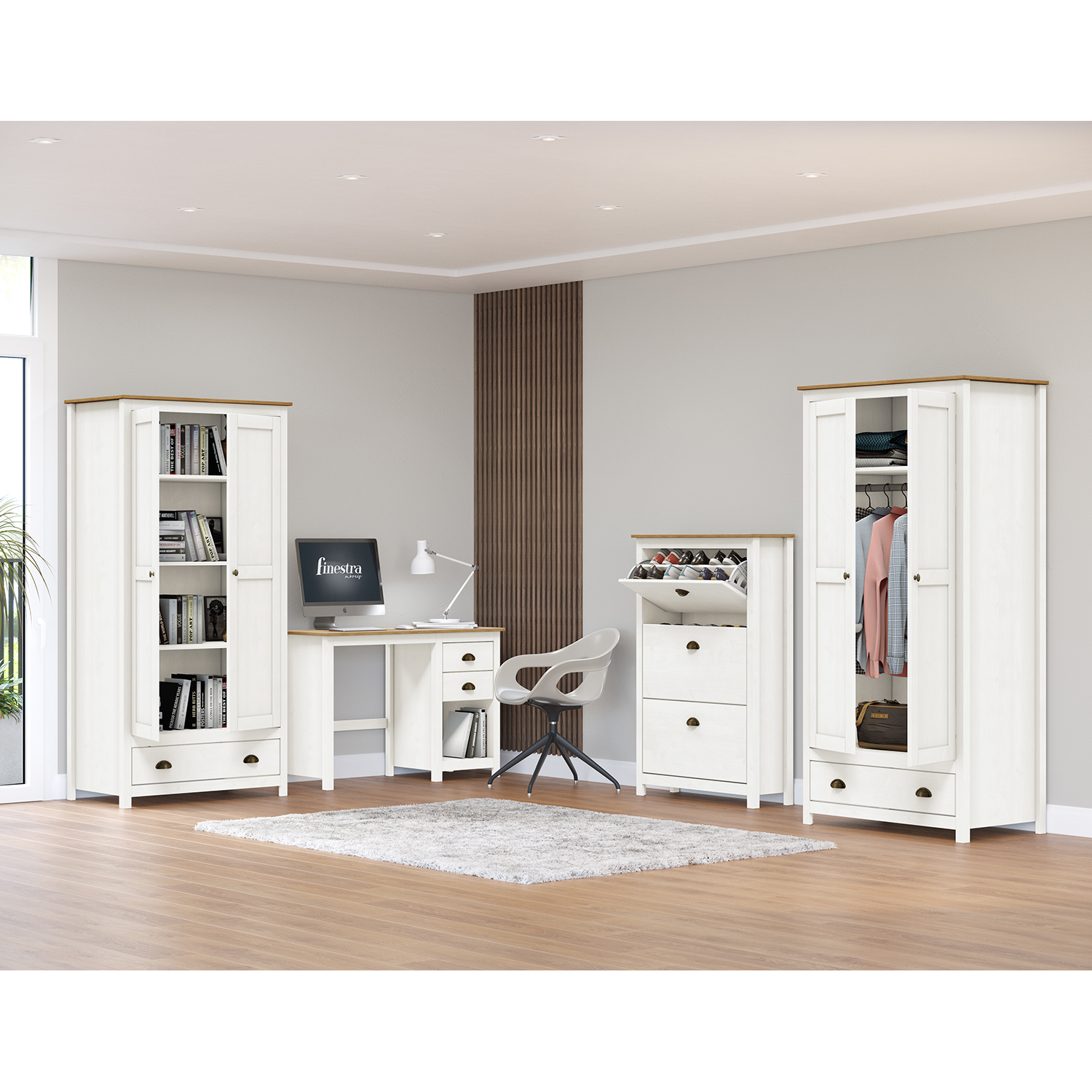 Pokiaľ aj vy nepatríte medzi osoby hromadiace oblečenie, ale dávate prednosť pár kvalitným kúskom, potom vám určite bude vyhovovať aj prehľadne usporiadaná skriňa. 2-dverová skriňa TOPAZIO vo farebnom prevedení biely / hnedý lak bude spoľahlivo slúžiť vo vašej izbe aj v šatni. Masívna skriňa obsahuje jednu policu, pevnú kovovú tyč a v spodnej časti navyše širokú zásuvku. Všetko oblečenie teda zavesíte na ramienka a doplnky uložíte na policu. Do širokej zásuvky s kovovými pojazdmi a výraznými úchytkami potom poskladáte bielizeň. Biela skriňa s hnedou vrchnou doskou krásne doplní ostatný nábytok TOPAZIO. Dvojdverová skriňa poskytne dostatočný priestor pre vašu garderóbu. Pokiaľ by vám predsa len nejaké to miesto chýbalo, možno ku skrini postaviť komodu či na skrini urobiť miesto pre nadstavec. Nábytok TOPAZIO bude baviť, vďaka svojej jednoduchosti, ako absolútnych minimalistov, tak, vďaka dizajnu, večné romantičky. Umiestnite túto kvalitnú skriňu aj do vašej spálne?