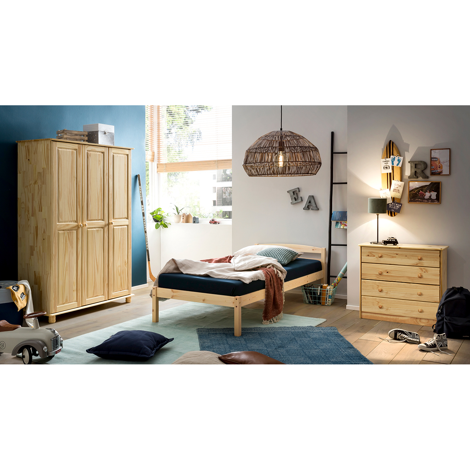Veľká šatníková skriňa je kúskom nábytku, ktorý vám musí slúžiť po dlhú dobu. Vyberajte teda pevné a kvalitné skrine s veľkým úložným priestorom. Skriňa trojdverová 8863 v prevedení masív borovica je delená v pomere 2:1 a ponúka vám prehľadne usporiadaný priestor. V širšej časti skrine sa nachádza polica a šatníková tyč, ľahko tak uložíte čiapky, klobúky, šály a šatky a na tyč zavesíte všetky svoje zvršky, spodnú časť je možné opatriť krabicami a boxmi. Užšia časť skrine je zaplnená po celej dĺžke variabilnými policami, tieto tri police je možné ľubovoľne presúvať, podľa vašich požiadaviek. Robustná skriňa sa vďaka prírodnému materiálu a jednoduchému dizajnu hodí do rôznych interiérov. Skriňu plne využijete ako v detskej izbičke, tak v šatni či spálni. Skriňa stojí na robustných nohách, takže pod ňou ľahko vysajete prach a drevené úchytky vám vydržia na rozdiel od plastových celú večnosť. Kvalitná skriňa sa vo vašej domácnosti vždy rýchlo zabýva. Pokiaľ budete potrebovať predsa len nejaké to miesto navyše, vyriešite nedostatok priestoru za pomoci jednoduchého nadstavca 8864 v rovnakom prevedení. Pevná skriňa vám tak vydrží po celý život.