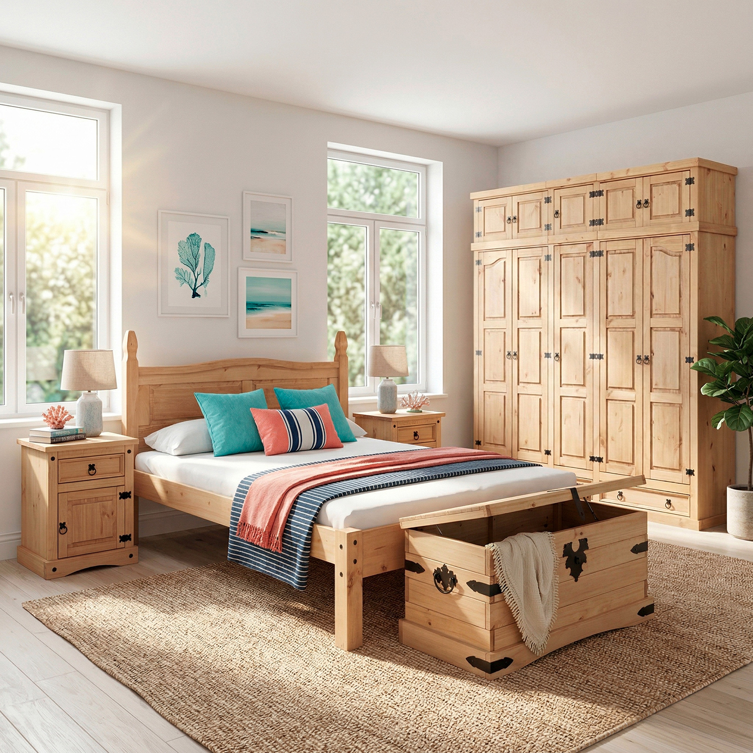 Chaos vo vašom šatníku vás môže ráno zdržať o niekoľko desiatok minút. Hľadanie toho správneho outfitu by pre vás malo byť jednoduchšie vďaka správne usporiadanej skrini. Skriňa 5-dverová CORONA vosk je presne tým kúskom nábytku, ktorý zariadi vo vašom šatníku dokonalý poriadok. Obrovská skriňa v prevedení masív borovica voskovaná v krásnom medovom odtieni je delená v pomere 2:1:2, čo zaisťuje jej dokonalú praktickosť. V širších častiach je k dispozícii šatníková tyč a polica, v prostrednej časti sa potom nachádzajú tri variabilné police. V spodnej časti skrine nájdete priestranné zásuvky, dve sú širšie a prostredná je menšia. Do skrine tak uložíte úplne všetko oblečenie, a to veľmi prehľadne. Nábytok zo zostavy CORONA vás vždy uchváti ako krásnym odtieňom a dezénom dreva, tak dokonalým spracovaním a zdobením čiernymi kovovými pántami a úchytkami. Skriňa 5-dverová CORONA sa bude hodiť predovšetkým do spálne zariadenej nábytkom CORONA v obľúbenom rustikálnom štýle. Veľká skriňa pojme oblečenie vaše aj vášho partnera, neváhajte teda ani minútu a užívajte si pokojné rána bez stresu z obliekania, prehľadný šatník si obaja zamilujete.