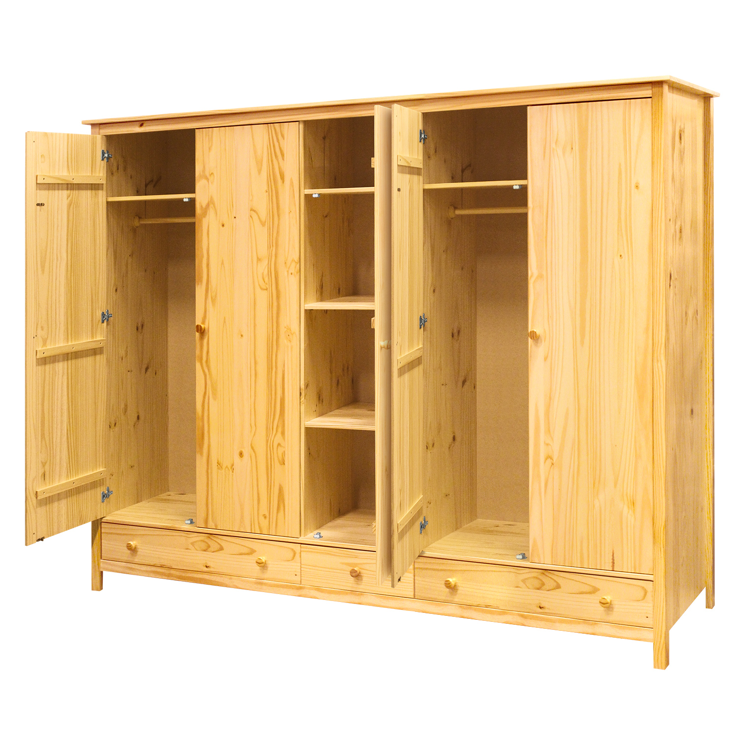 Ak ste viacčlenná rodina alebo len milujete módu a máte naozaj veľa oblečenia, tak skriňa 5-dverová TORINO by mohla byť určená práve pre vás. Je z masívnej borovice a je v lakovanom prevedení. Priestor v skrini je delený v pomere 2:1:2. V ľavej a pravej širšej časti sa nachádza priestranná šatníková tyč a polica na sezónne oblečenie či klobúky a čiapky. Na šatníkovú tyč môžete zavesiť šaty, kabáty, bundy alebo košele. V strednej úzkej časti sa nachádzajú 3 police na uloženie tričiek a svetrov. V spodnej časti sa nachádzajú 3 zásuvky s kovovými pojazdmi, sem zase môžete uložiť vašu spodnú bielizeň. Keďže je skriňa naozaj veľmi priestranná, určite v nej nájdete miesto aj na posteľnú bielizeň. Skvele bude vyzerať nielen na chate či chalupe, ale aj v moderne vybavenom dome. Doplňte skriňu nadstavcom a o úložný priestor už nikdy nebudete bojovať s ostatnými členmi domácnosti.