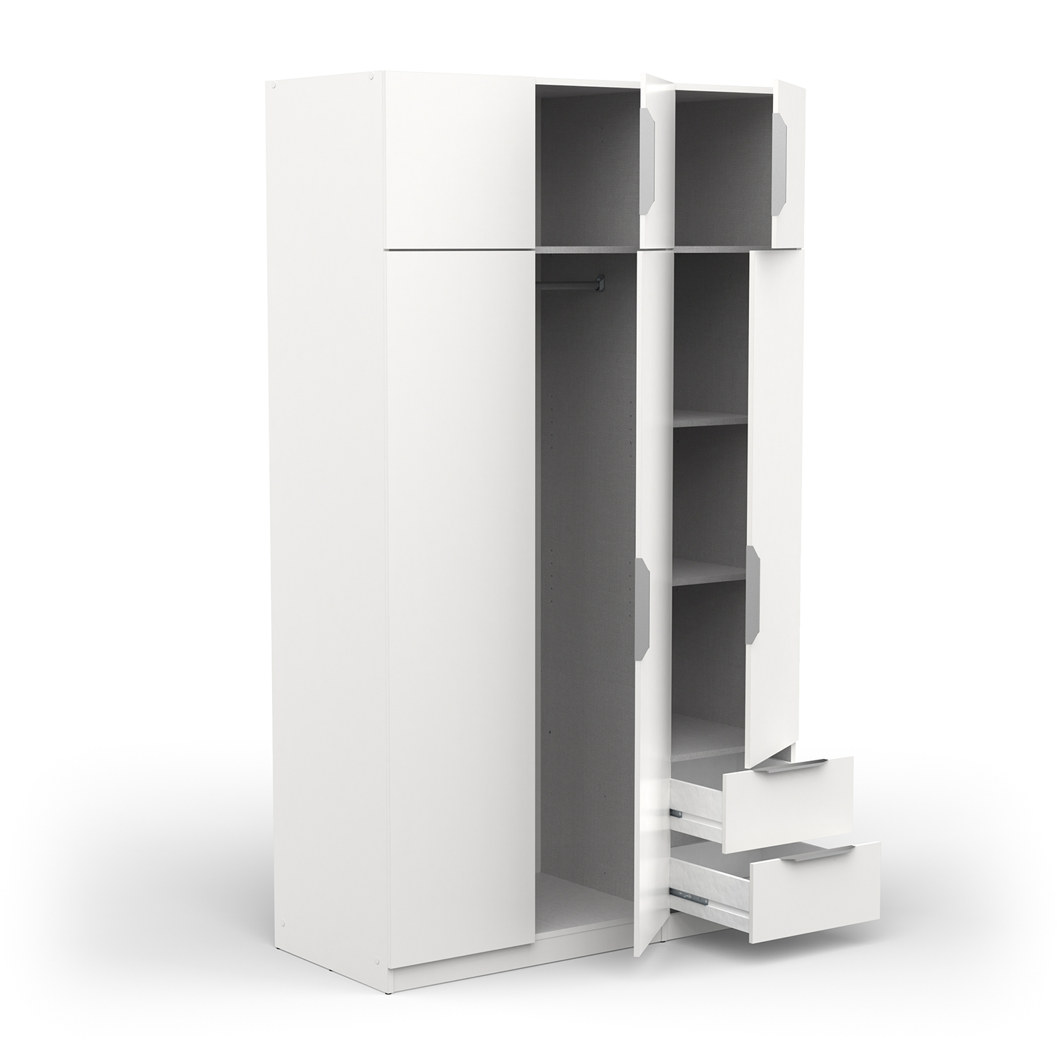 Skriňa GHOST v bielom prevedení je zaujímavým kúskom nábytku, ktorý sa vám bude zaiste páčiť. Skriňa 6-dverová vo farebnom prevedení biela je skvelou voľbou pokiaľ preferujete šikovný úložný priestor aj klasické vybavenie spálne. Praktická a kvalitná, to je spojenie, ktoré len tak nenájdete. Skriňa má priestor delený v pomere 2:1, v ľavej časti sa nachádza šatníková tyč, v pravej časti 2 police a 2 zásuvky s kovovými pojazdmi. V hornej časti sa potom nachádzajú dva úložné priestory. Jednoducho tak uložíte zvršky a poskladáte nohavice aj tričká, zásuvky potom využijete na uloženie drobnej bielizne. Skriňou vybavíte ako spálňu, tak šatňu, umiestnite ju však aj na chalupe či chate. Všade bude tento krásny kúsok nábytku vytvárať z obyčajného priestoru jedinečné miesto na život.