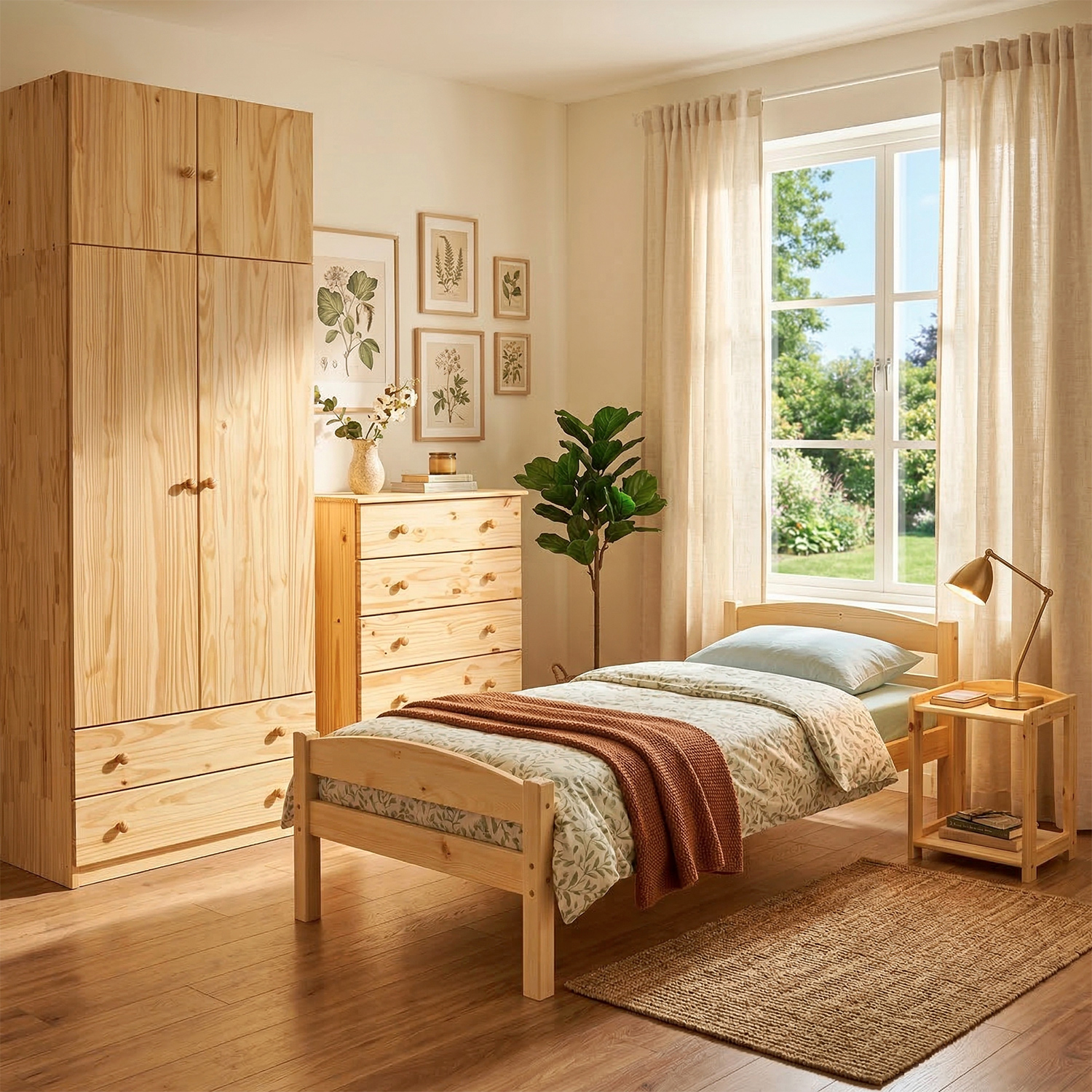 Keď vďaka malým rozmerom bytu nemôžete mať vlastnú šatňu, túžite aspoň po priestrannej skrini. Skriňa s 2 zásuvkami 865 zaujme čestné miesto vo vašej izbe. Do skrine v prevedení masív borovica umiestnite všetko oblečenie. Masívna skriňa je vybavená šatníkovou tyčou na zavesenie kabátov, košieľ, šiat a nohavíc, v spodnej časti potom nájdete dve praktické zásuvky s kovovými pojazdmi na spodnú bielizeň, ponožky a doplnky. Jednoduchá skriňa bude baviť aj vaše dospievajúce deti, ale rovnako dobre ako v detskej izbe, poslúži aj v predsieni. Pevnú masívnu skriňu oceníte aj v študentskom podnájme, na chalupe či chate aj na ubytovni. Vyťažte aj z malej izby hromadu miesta na vaše veci, dvojdverová masívna skriňa je skvelou voľbou.