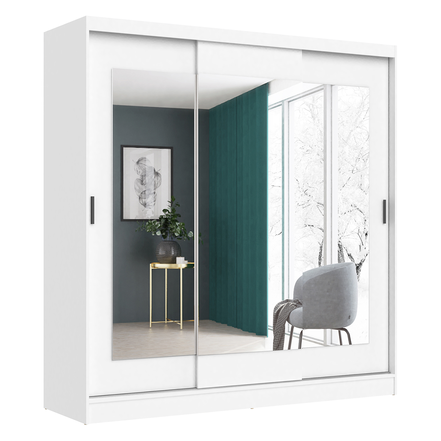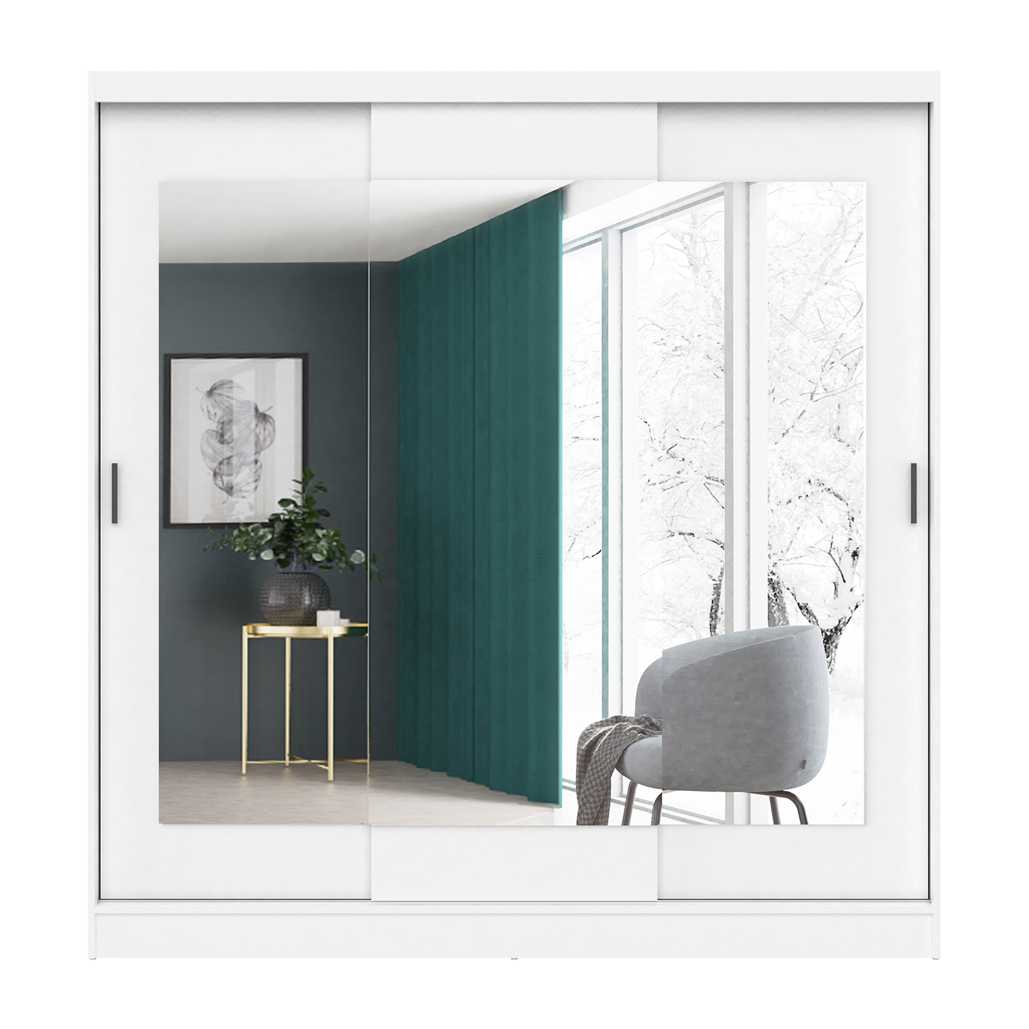 Skriňa ARIS II IN5002479 už dokáže splniť aj náročnejšie požiadavky zákazníkov. Je totiž veľká, priestranná a vybavená dokonca tromi zrkadlami. Skriňa je biela a vďaka zrkadlám opticky zväčší a rozjasní každú spálňu alebo šatňu. Šatníková skriňa je vybavená 4 priestrannými policami v ľavej časti, kde si môžete jednoducho odložiť oblečenie do komínkov. V strednej a pravej časti sa nachádzajú dve šatníkové tyče, každá s dĺžkou 68 cm, na ktoré môžete zavesiť kabáty, bundy, šaty alebo košele na vešiaky. Nad šatníkovými tyčami sa nachádza široká polica na klobúky alebo sezónne oblečenie či posteľnú bielizeň. Vďaka priestrannosti celej šatníkovej skrine už nebudete potrebovať ďalší kus nábytku na uloženie oblečenia. Šatníková skriňa ARIS II sa stane dominantou vašej spálne aj šatne.