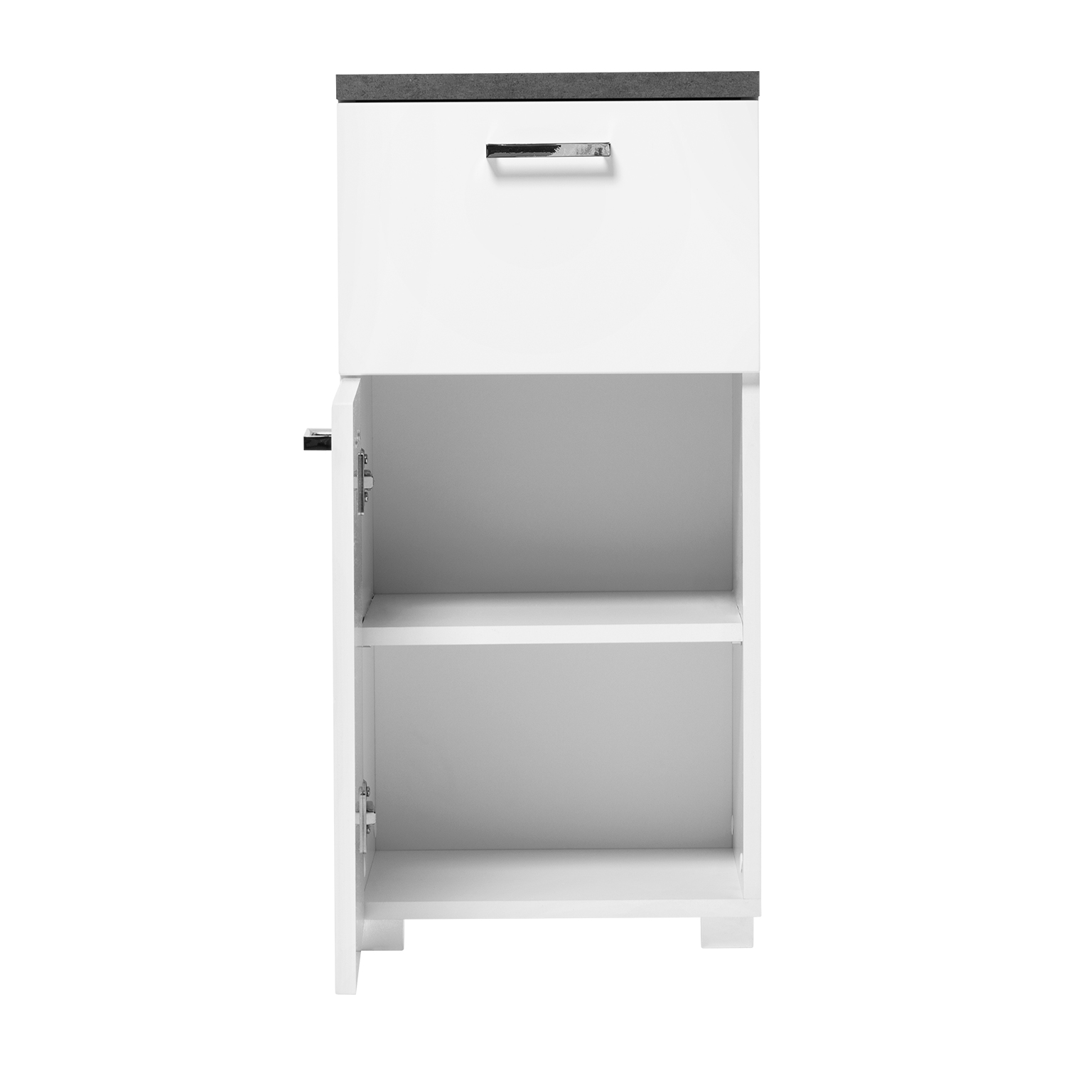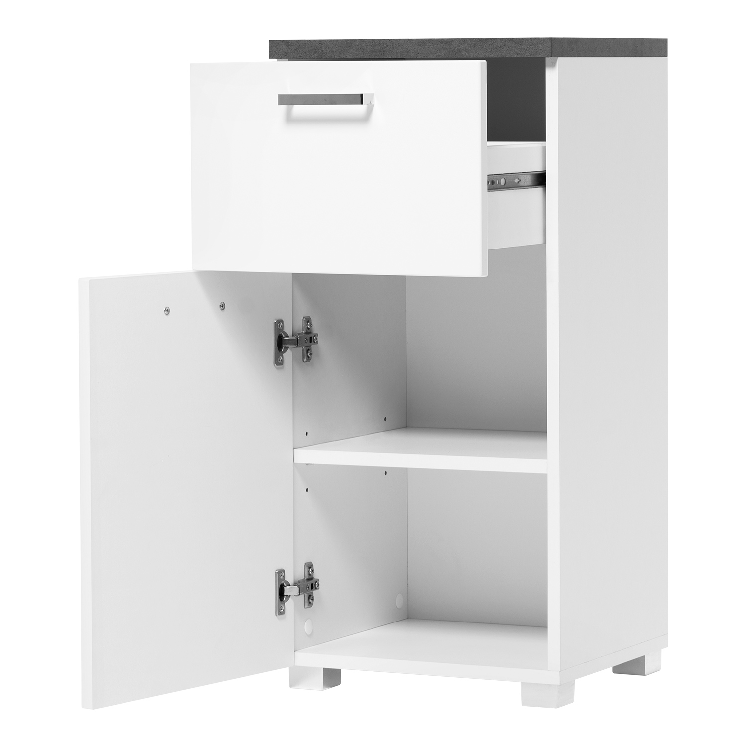 1 dvierka, 1 polica, 1 zásuvka s kovovými pojazdmi