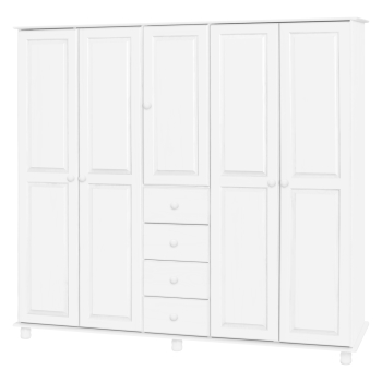 materiál masív borovica, lakované prevedenie štyri zásuvky s kovovými pojazdmi v ľavej časti dve šatníkové tyče, v strednej časti 1 polica a v pravej časti 3 police odporúčaný nadstavec 8855