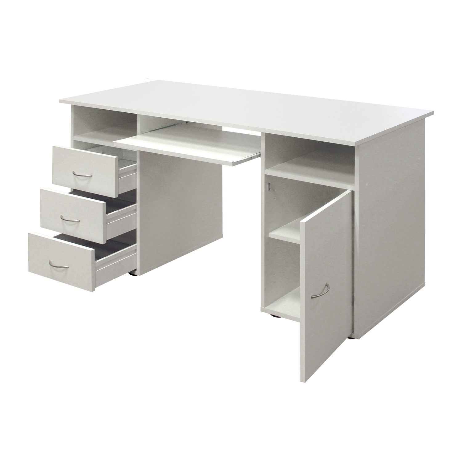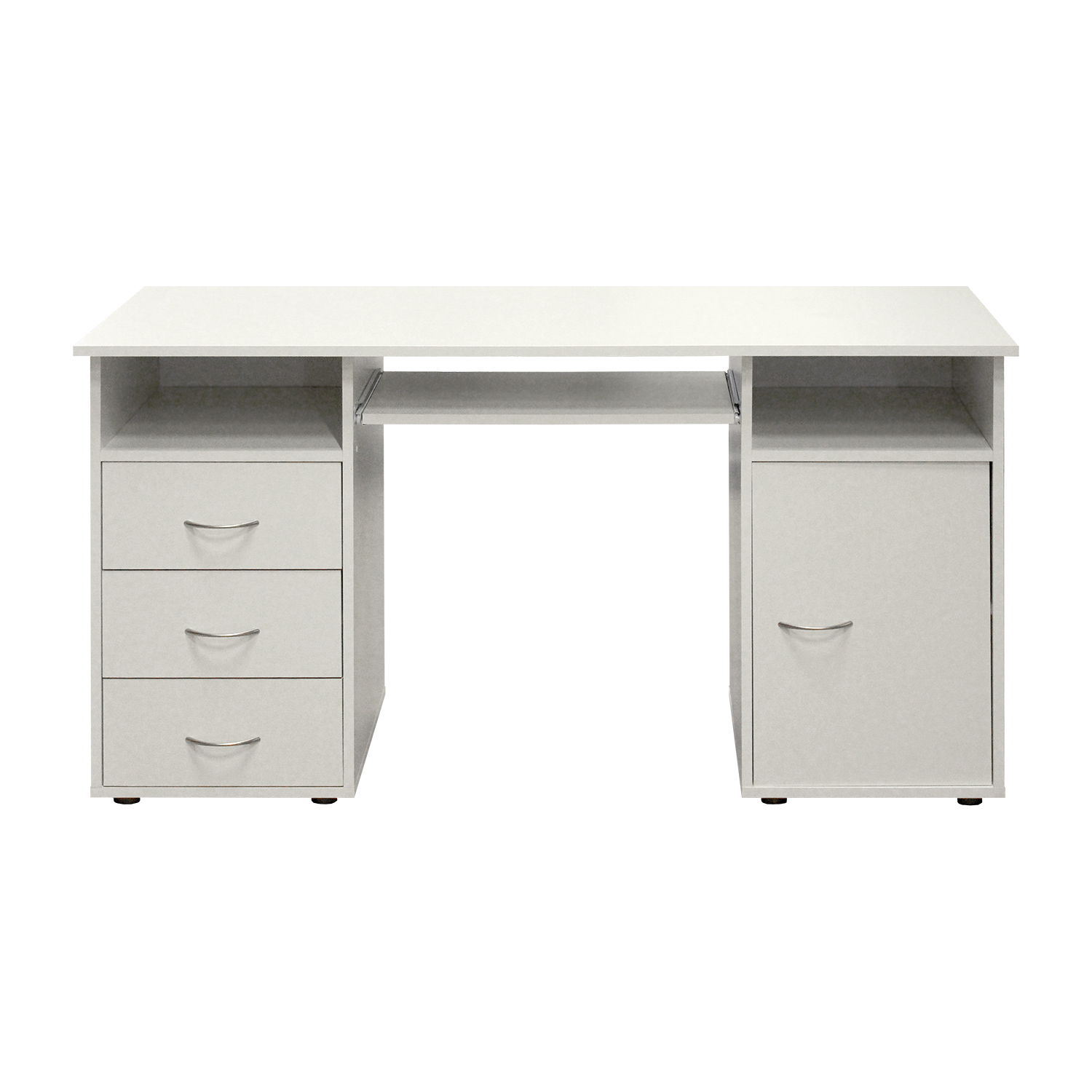 Potom na scénu nastupuje skutočne praktický pomocník. Stôl na počítač 194 vo farebnom prevedení biela pekne zapadne do pracovne či študentskej izby. Biely stôl pôsobí sviežim dojmom a zaujme teda miesto v každej izbe vybavenej práve moderným bielym nábytkom. Stôl je dokonale rozdelený, na jednej strane uvítate skrinku s dvierkami a variabilnou policou, na strane druhej využijete tri zásuvky, takže vám práca pôjde od ruky. Pod pracovnou plochou nájdete dve police na odloženie stále používaných dokumentov aj odborných kníh, uprostred potom uvítate výsuv pre klávesnicu, ktorého montáž je voliteľná. Na veľkej pracovnej ploche stola tak môže stáť stolný počítač aj notebook. Faktúry a dôležité dokumenty potom jednoducho uložíte do zásuviek alebo ukryjete do skrinky. Perfektne usporiadaný pracovný stôl vám ušetrí veľa času a urýchli aj zložitejšiu prácu, zostane vám tak viac priestoru pre vlastné koníčky a pre rodinu.