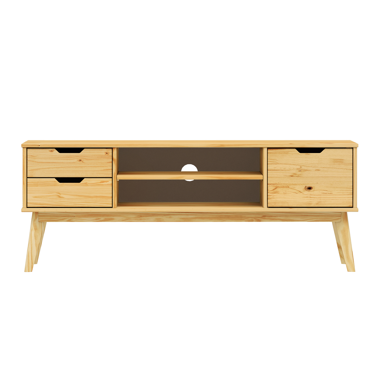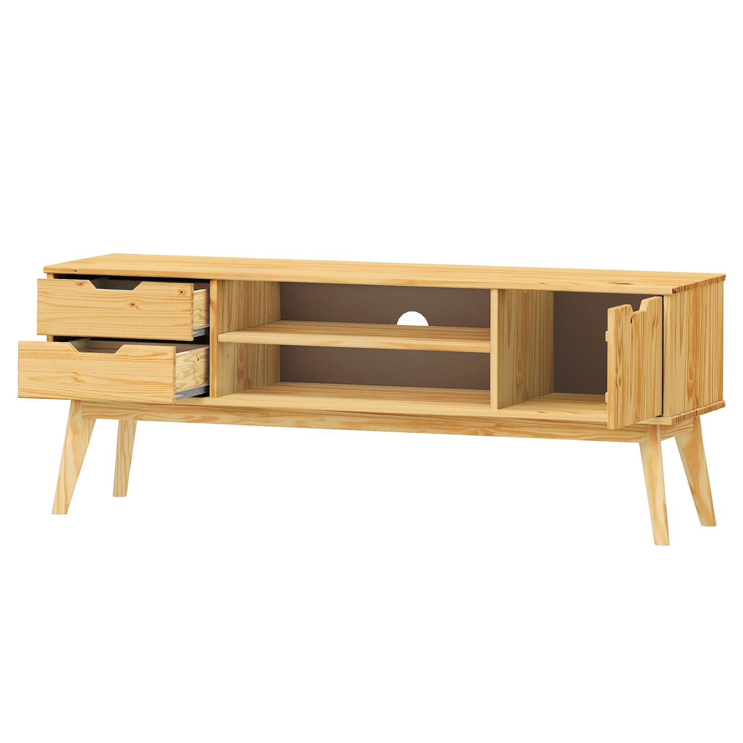 TV stolík 1 dvere + 2 zásuvky BONITO je z masívneho borovicového dreva v lakovanom prevedení. Tento šikovný a štýlový kúsok nábytku je ideálnym riešením na usporiadanie vášho televízneho kúta. S jedinečným dizajnom a kvalitným lakom sa TV stolík BONITO stane skvelým doplnkom vášho interiéru. Jeho moderný vzhľad a praktická konštrukcia sú kombinované s funkcionalitou, aby ste mohli naplno využiť priestor vo vašej obývacej miestnosti. Vďaka dvierkam a dvom zásuvkám s kovovými pojazdmi získate dostatok úložného priestoru na uschovanie všetkých potrebných vecí. Môžete skryť diaľkové ovládače, herné konzoly a ďalšie drobnosti, ktoré by mohli rušiť vizuálny dojem vašej obývačky. Okrem praktickosti si môžete byť istí aj kvalitou prevedenia. Odolný lak chráni povrch pred poškriabaním a zaisťuje jednoduchú údržbu. Tento TV stolík je nielen funkčným, ale aj štýlovým prvkom, ktorý prinesie do vášho domova modernú atmosféru.