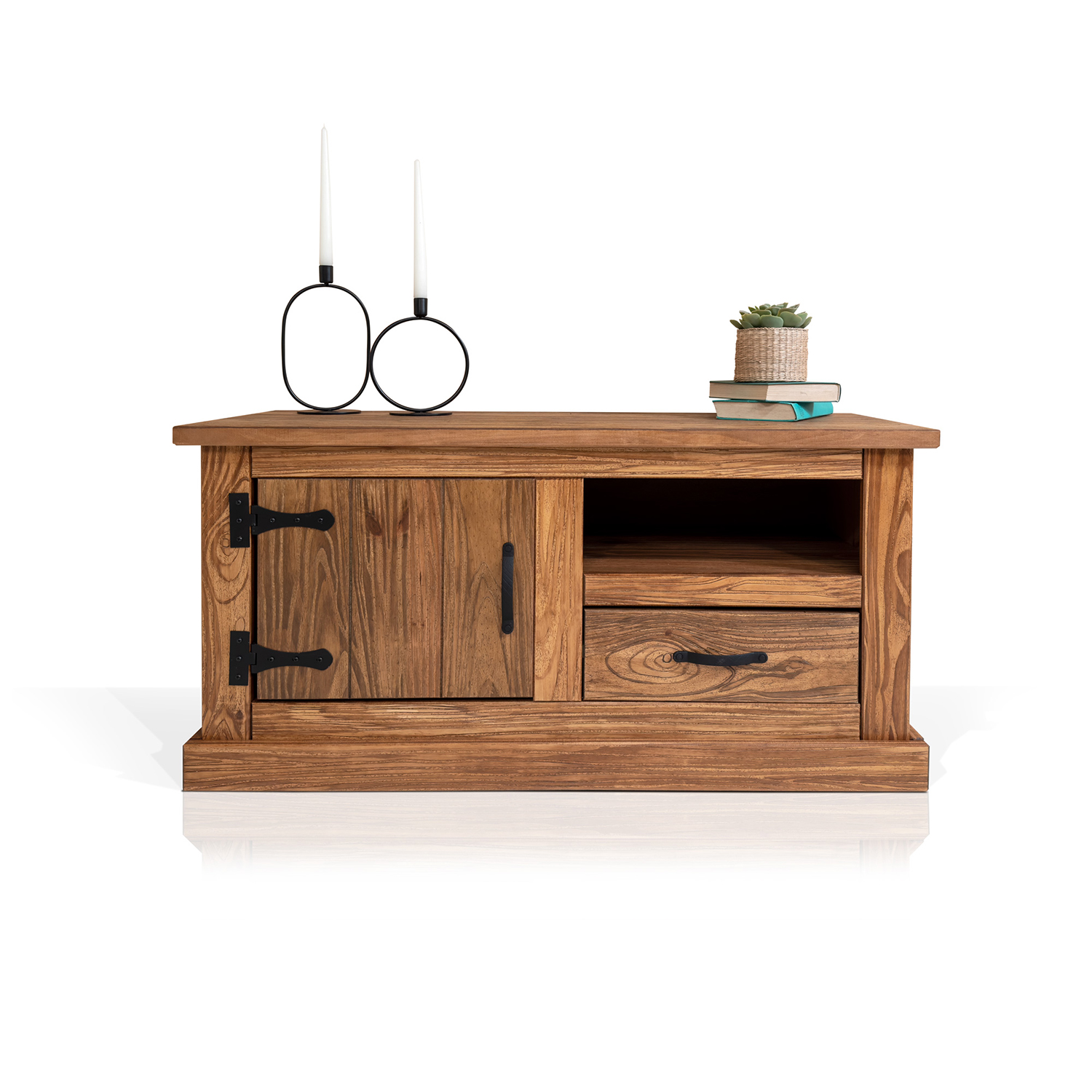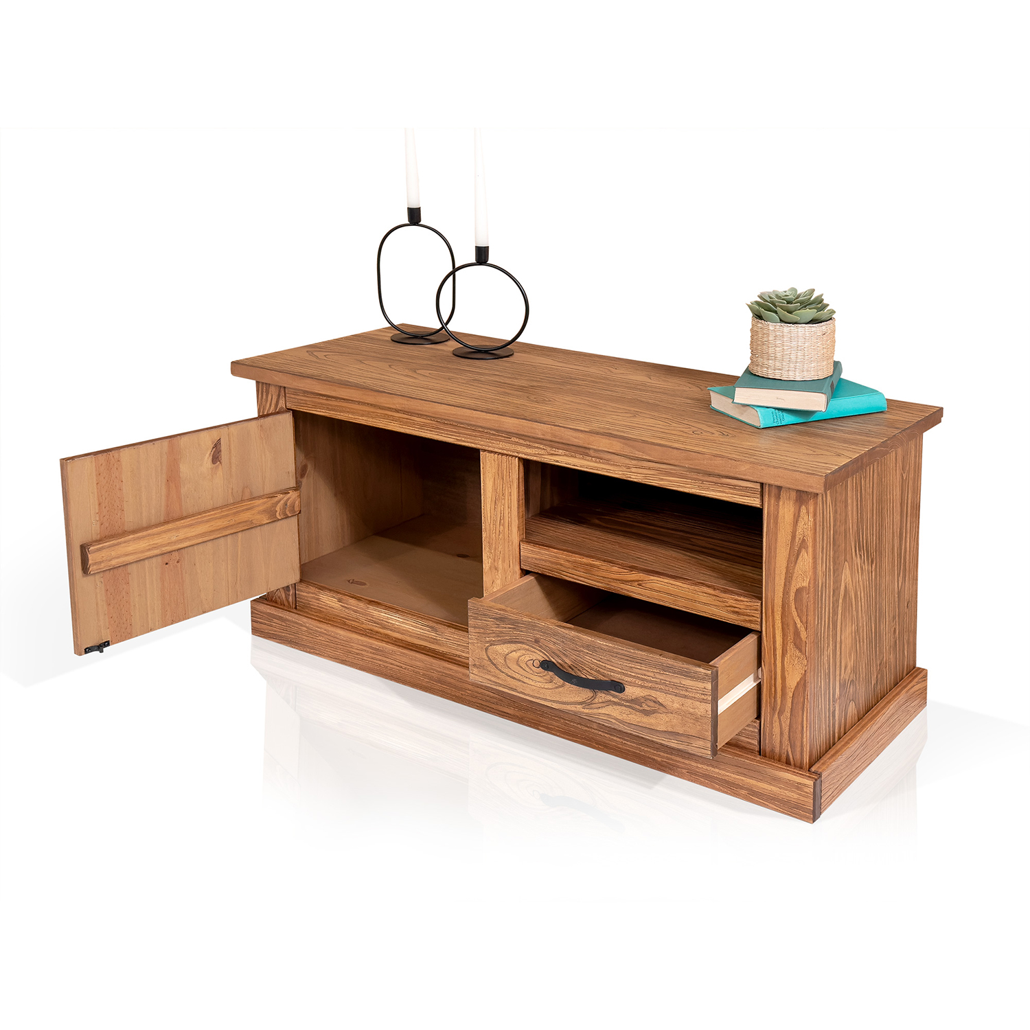 Nechajte aj u vás doma vládnuť masívne kúsky nábytku. Vďaka obľúbenému rustikálnemu nábytku z radu EL DORADO sa vaša obývacia izba premení na miesto navodzujúce pohodu a pokoj. Do prvotriednej zostavy z masívneho borovicového dreva, vo farebnom prevedení dub antik s plastickým vlisom drevenej štruktúry, patrí aj tento krásny TV stolík EL DORADO. Masívny nábytok dáva priestoru pokojný a útulný vzhľad, ktorý si zamilujete. Stolíky pod televíziu sú však obľúbené aj pre ich praktickú stránku. Televízny stolík ponúka otvorenú policu na uloženie diaľkového ovládania či televízneho magazínu, skrinku a zásuvku na upratovanie drobností v obývacej izbe. TV stolík totiž vyzerá naozaj nádherne, a to bez zbytočných ozdôb. Nechajte vyznieť jeho krásu a postavte naň iba svoju televíziu. Pozrite sa aj na ostatné kúsky z masívnej zostavy EL DORADO a obklopte sa luxusným nábytkom.