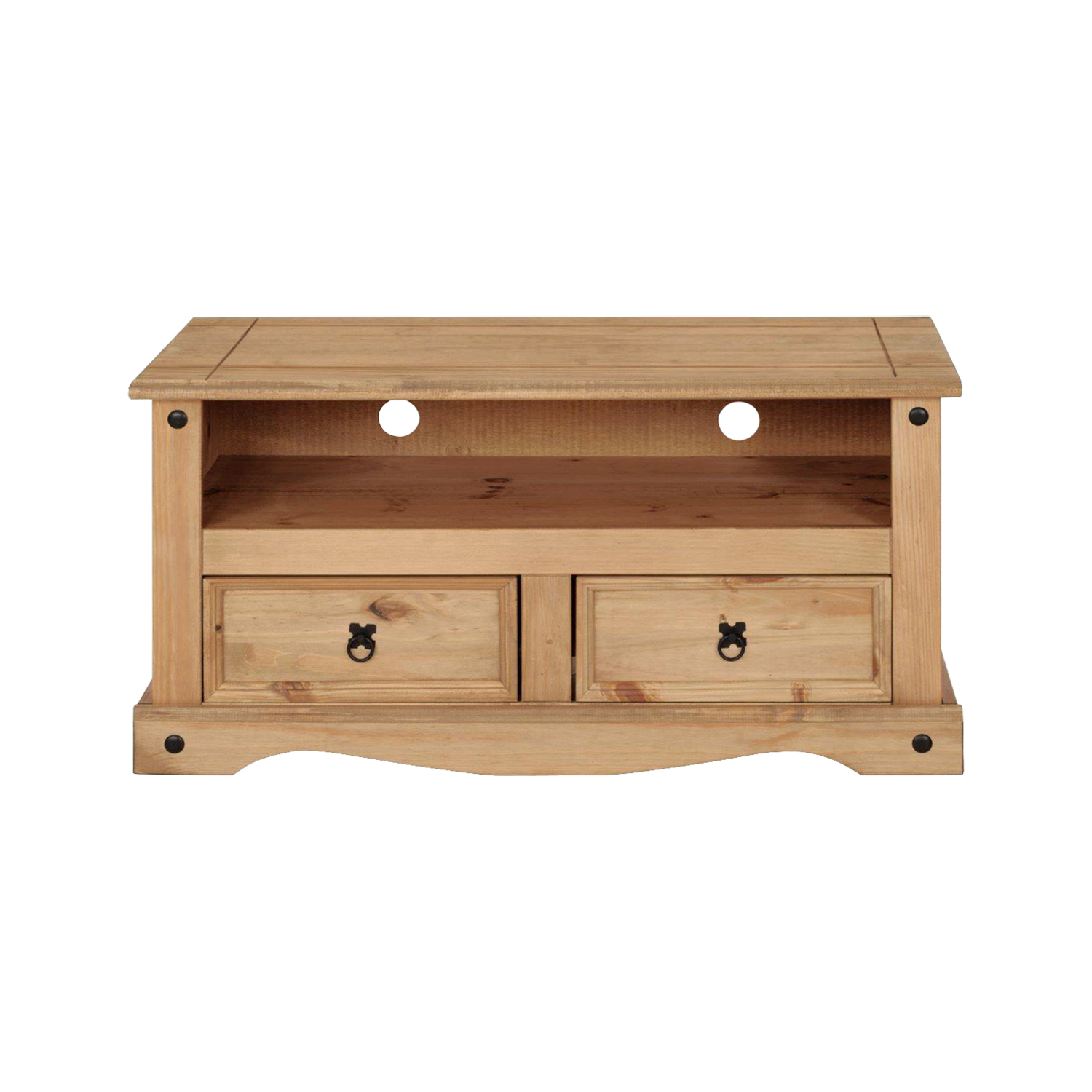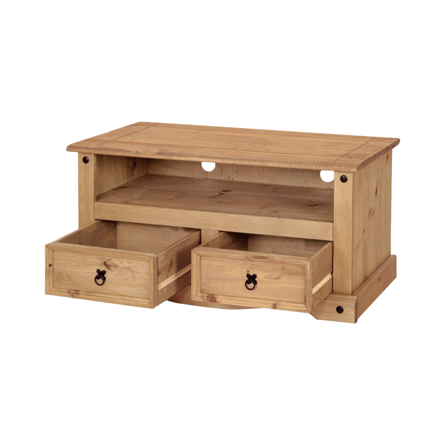 TV stolík CORONA 3 vosk 161025 v prevedení masívna borovica voskovaná v medovom odtieni je skvelým stolíkom pod vašu televíziu. Skvele ladí s ostatnými kusmi nábytku zo zostavy CORONA 3. Táto zostava sa skvele hodí aj na vašu chatu či chalupu. Je robená v takom staršom štýle, ale aj milovníci moderného nábytku tejto zostave prídu na chuť. Stolík je vybavený 2 zásuvkami a jednou otvorenou policou. Stolík zdobia ozdobné čierne úchytky, ktoré skvele ladia s dekorom borovice. Chrbát TV stolíka je vybavený dvoma otvormi pre ľahké pretiahnutie káblov na pripojenie prídavných zariadení k vašej televízii. Je len na vás, ktoré zariadenia to budú, či herná konzola alebo len set-top box.
