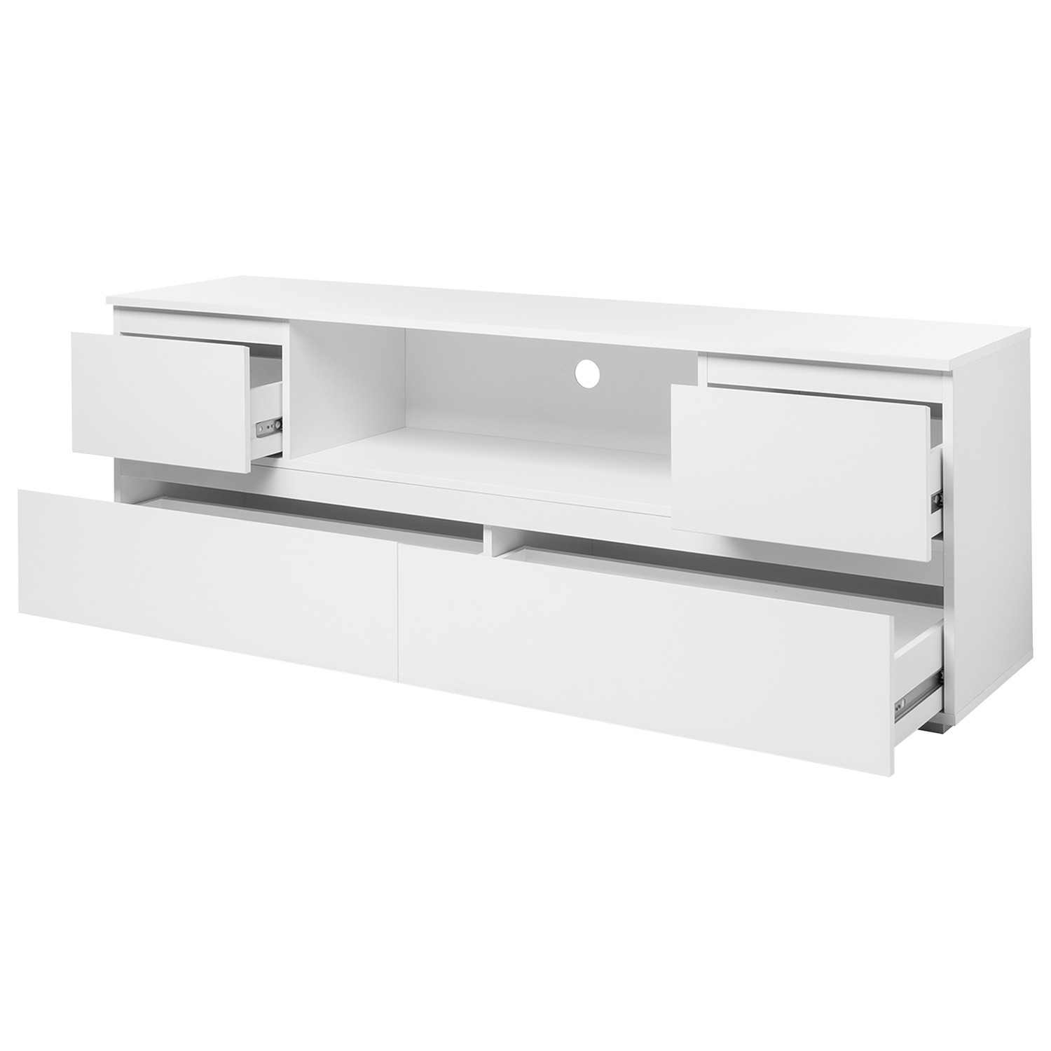 Potom by vo vašej obývačke nemal chýbať ani poriadny TV stolík, ktorý vám sledovanie obľúbených programov spríjemní. TV stolík IMAGE 18 vo farebnom prevedení biela je vhodný aj na veľkú televíziu. Biely nábytok vytvorí v obývacej izbe príjemnú atmosféru vhodnú práve na odpočinok pri obľúbenom programe. TV stolík IMAGE 18 vám poskytne nielen skvelý výhľad na obrazovku, ale predovšetkým ponúkne priestor ako na vystavenie, tak uschovanie vecí. TV stolík má dve menšie a dve väčšie zásuvky s pojazdmi s guličkovými ložiskami. TV stolík tak pojme TV magazíny, diaľkové ovládače aj ďalšie drobné veci či dokumenty. Ponúkne však aj policu na DVD prehrávač či set-top box s otvorom pre káble. TV stolík IMAGE 18 si bude najlepšie rozumieť s ostatným nábytkom IMAGE. Do obývacej izby je moderný nábytok IMAGE ideálnou voľbou, vyzerá úplne luxusne a poskytne vám prvotriedny komfort.