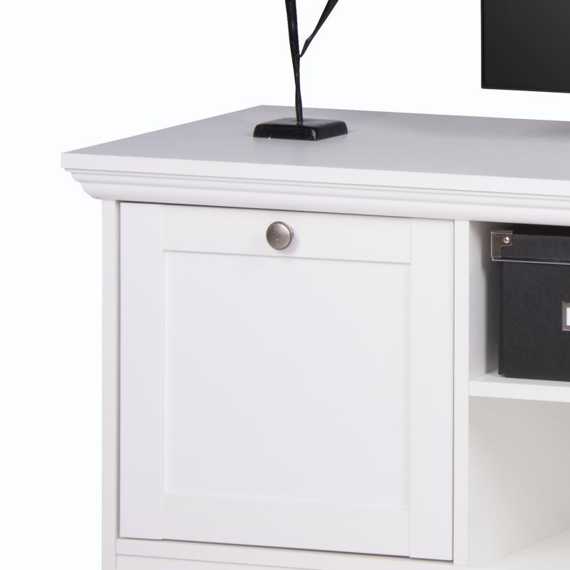 Pokiaľ máte elegantným bielym nábytkom vybavený skoro celý váš byt či dom, potom by biely nábytok nemal chýbať ani v obývacej izbe, kde vytvorí príjemnú a pohodovú atmosféru, presne takú aká nesmie práve v obývacej izbe chýbať. TV stolík LANDWOOD 17 vo farebnom prevedení biela vám poskytne naozaj príjemný pohľad na vašu televíznu obrazovku. TV stolík disponuje okrem veľkej plochy na umiestnenie obrazovky aj šikovne riešeným úložným priestorom. V prostrednej časti sú široké police na umiestnenie DVD prehrávača, diaľkového ovládania či set-top boxu. Po bokoch stolíka sa nachádzajú malé úložné priestory vybavené dvierkami s úchytkou starožitného vzhľadu, vo vnútri úložných priestorov sú tiež police, zmestia sa do nich drobné veci, ktoré chcete uschovať. TV stolík LANDWOOD 17 je súčasťou zostavy Landwood, vaša spálňa tak môže byť úplne dokonalá, a to do posledného detailu.