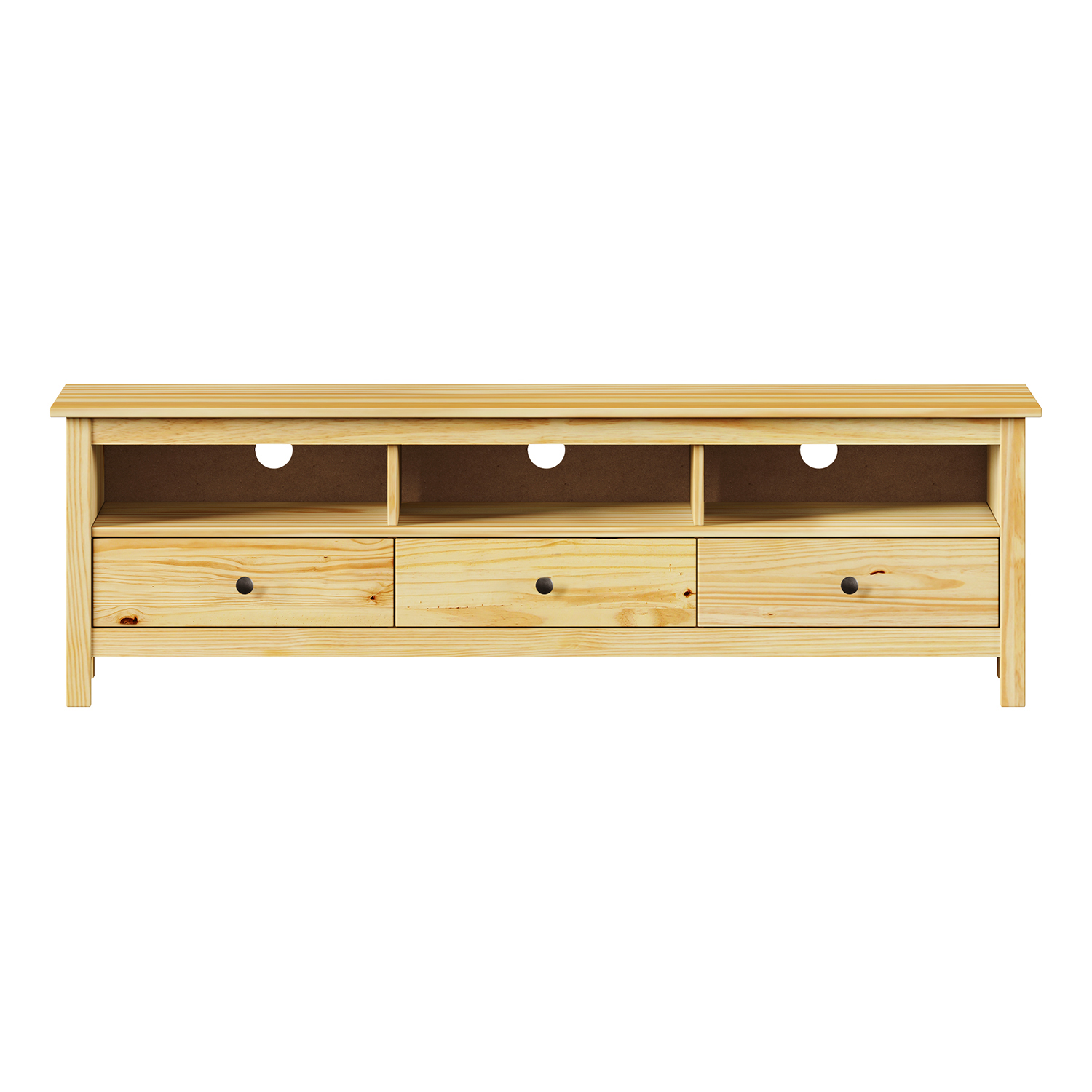 TV stolík TORINO je kus nábytku, ktorý si vás získa svojim poctivým prevedením a prírodnou estetikou. Je vyrobený z masívu borovica a lakovaný tak, aby vynikla kresba dreva, ale zároveň bola zachovaná jeho odolnosť a jednoduchá údržba. Každý detail pôsobí premyslene a pevne. Hlavná odkladacia plocha pojme bežnú televíziu aj s drobnou dekoráciou. Pod ňou nájdete praktické zásuvky a otvorený priestor, kam ľahko uložíte elektroniku alebo obľúbené časopisy. Kovové úchytky podčiarkujú jednoduchý vzhľad a zároveň zaisťujú pohodlné otváranie zásuviek. Celkový dizajn je nadčasový a ľahko vidiecky, ale bez zbytočného zdobenia. Hodí sa ako do moderného interiéru, tak aj do chalupy alebo bytu s rustikálnymi prvkami.