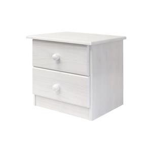 materiál masív borovica, lakované prevedenie 2 zásuvky s kovovými pojazdmi, hĺbka zásuvky 27,5 cm